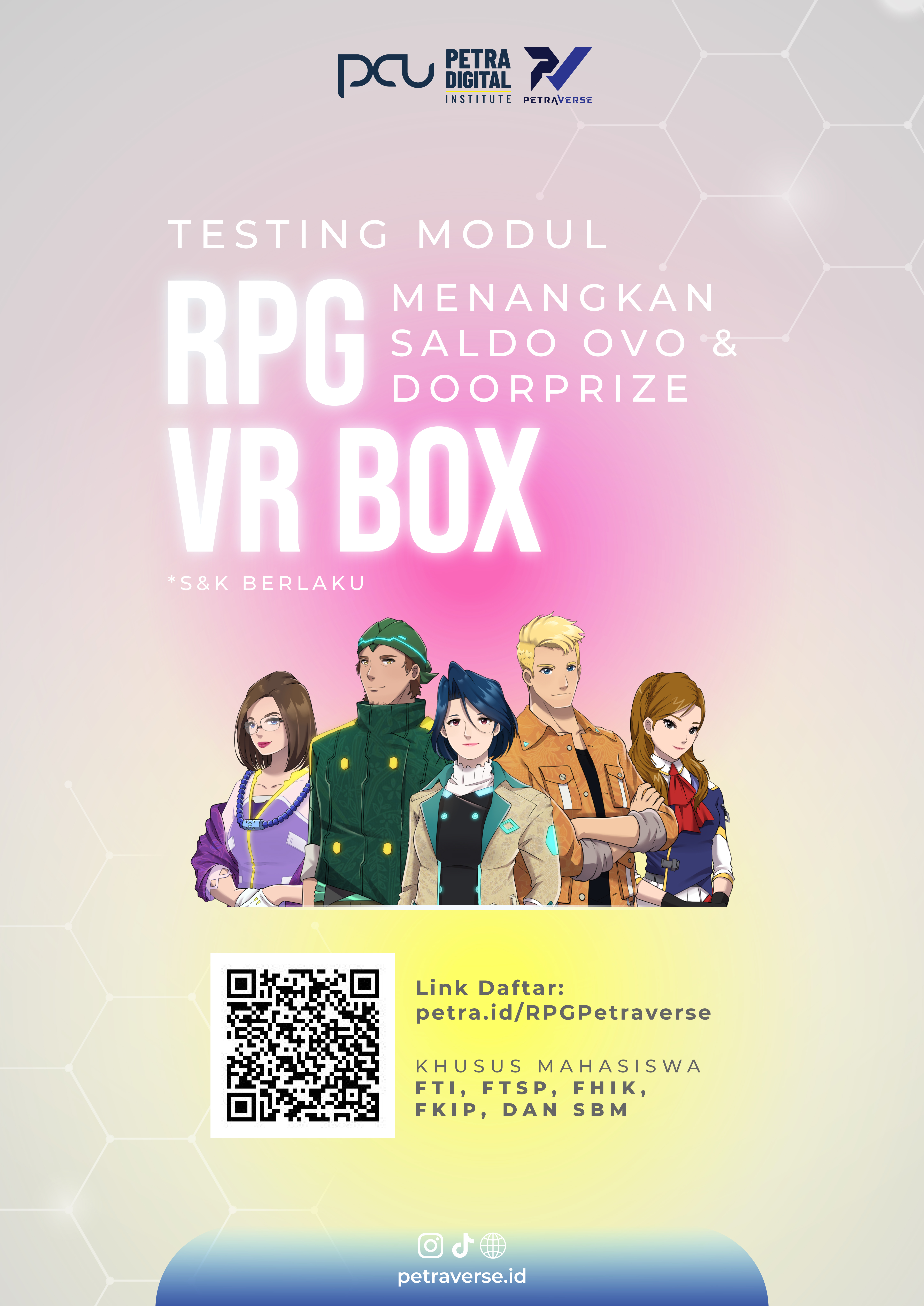Ikuti testing modul RPG Petraverse berhadiah saldo OVO dan VR Box. Syarat dan ketentuan berlaku. Info lengkap bisa dilihat di petra.id/RPGPetraverse