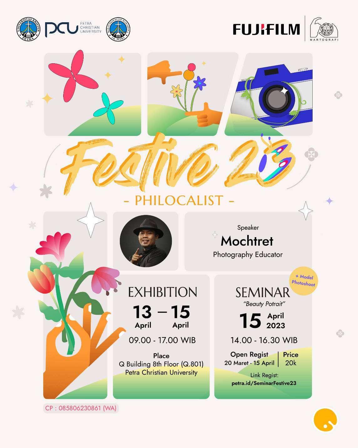 Festivemartografi, tahun ini bakal ngapain aja nihh! Akan ada LOMBA FOTO "PHILOCALIST" Hadiah buat juara 1 ini nggak tanggung-tanggung lohh yaitu uang tunai 1,5 juta + instax , juara 2 sebesar 1 juta , dan juara 3 sebesar 750k‼️ Hanya dengan 30k. Selain itu Festive 2023 bakal adain seminar yang keren banget, dengan kak Moch Rizky. link"https://www.instagram.com/mochtret/" @mochtret‼️ Yang mau daftar yukk cus serbu sebelum kehabisan slotnyaa, inget yaaa guys slotnya early bird TERBATAS‼️ Ga hanya itu ada pameran yang kalah keren lho philosYUK TUNGGU APA LAGI PHILOS , SERBU 🙌🙌 : linktr.ee/Festive2023. SEE U THEREE PHILOS!!