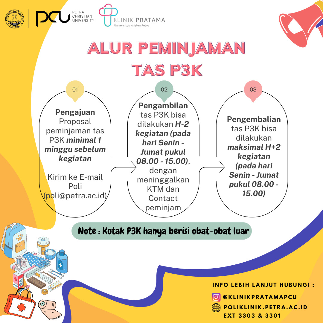 Poliklinik Universitas Kristen Petra Surabaya memberikan alur peminjaman peralatan P3K.