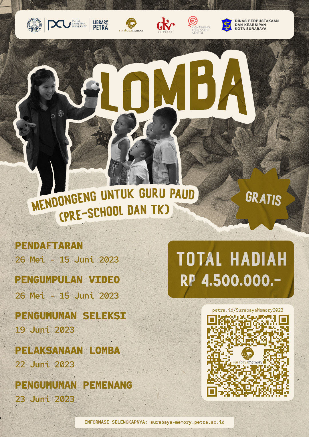 Lomba ini bertujuan untuk meningkatkan gairah mendongeng bagi guru PAUD. Keterampilan mendongeng sangat diperlukan bagi seorang guru PAUD untuk menstimulasi siswa suka membaca dan mengedukasi nilai-nilai etika,moral, spiritual sejak usia dini. Lomba ini salah satu rangkaian acara dari Surabaya Memory 2023. Pelaksanaan lomba pada 22 Juni 2023 dan pengumuman pemenang pada tanggal 23 Juni 2023. Kegiatan ini bertempat di Balai Pemuda Surabaya