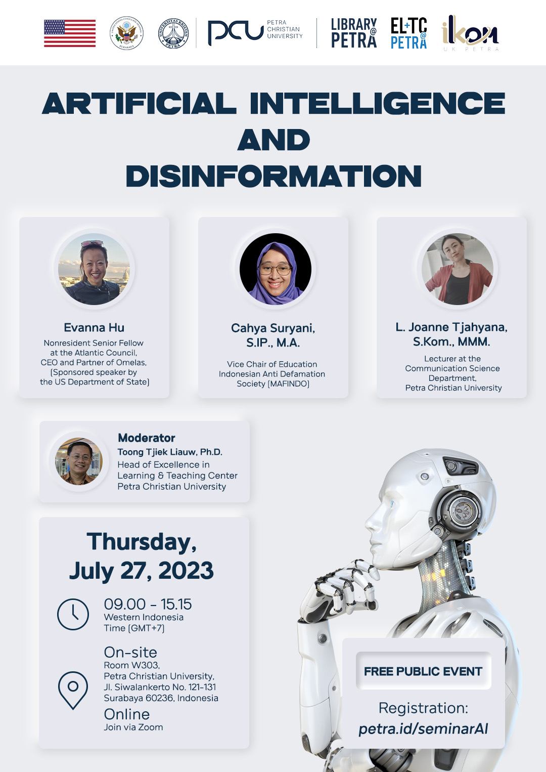 Seminar hybrid bertujuan untuk mengatasi tantangan dan peluang yang dihadirkan oleh kemajuan terbaru dalam AI, seperti ChatGPT, Midjourney, dan Stable Diffusion, dalam memerangi disinformasi menjelang tahun pemilu 2024 yang penting di Indonesia. Seminar tersebut memiliki arti penting bagi proses demokrasi Indonesia dan integritas pemilihan presiden Indonesia 2024 mendatang. Kampanye disinformasi dapat mengikis kepercayaan pada institusi, memanipulasi opini publik, menggoyahkan lingkungan pemilu, dan memengaruhi hasil pemilu. Diskusi terbuka tentang peran AI dalam menyebarkan dan memerangi disinformasi akan mendorong transparansi, inovasi, dan kolaborasi, memungkinkan pembuat kebijakan, pakar teknologi, dan warga negara untuk bekerja sama dalam memastikan keadilan dan akurasi pemilu, dengan demikian menjunjung tinggi nilai-nilai demokrasi bangsa. Seminar ini diadakan pada 27 Juli 2023 bertempat di gedung W.303