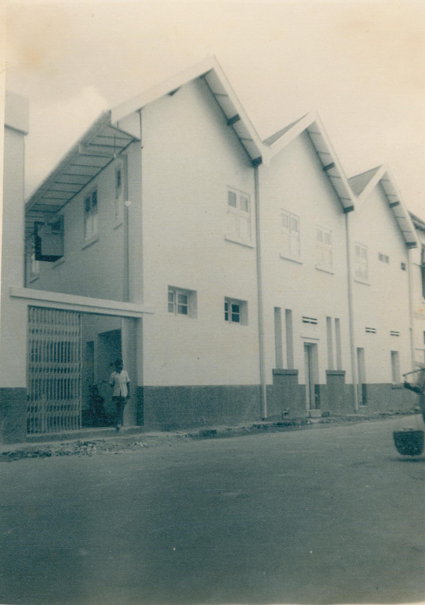 Atap gereja setelah dipugar dengan bentuk segitiga, menghadap jalan Samudra A. 15 Mei 1953