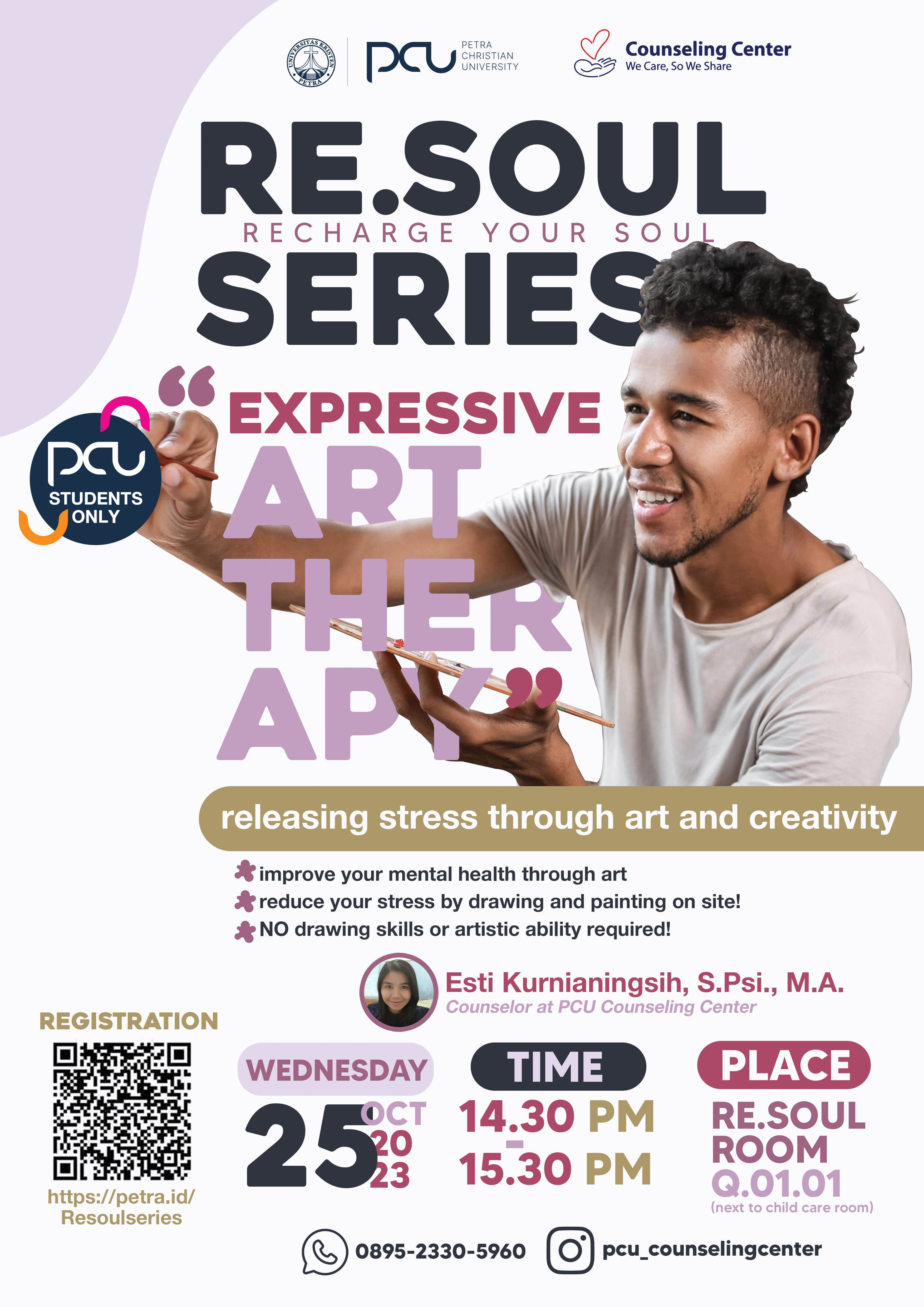 Workshop praktis untuk self-help dan stress release, akan diselenggarakan oleh Pusat Konseling dan Pengembangan Pribadi pada tanggal 25 Oktober 2023 pada pukul 14.30 - 15.30 WIB.