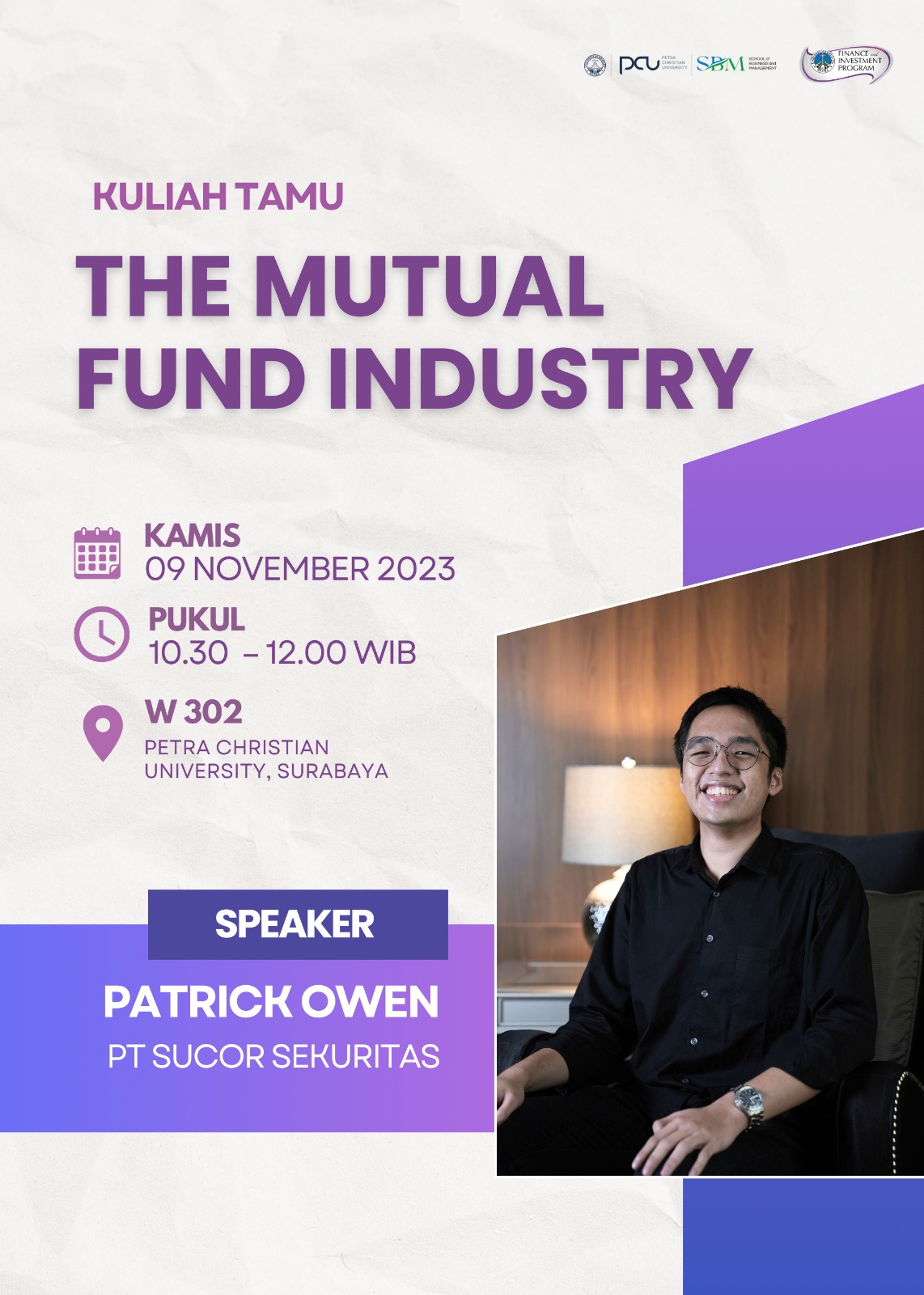Tujuannya agar Mahasiswa memahami konsep, peran dan risiko Mutual Fund. Menghadirkan narasumber Patrick Owen dari PT Sucor Sekuritas. Diselenggarakan pada 09 November 2023.