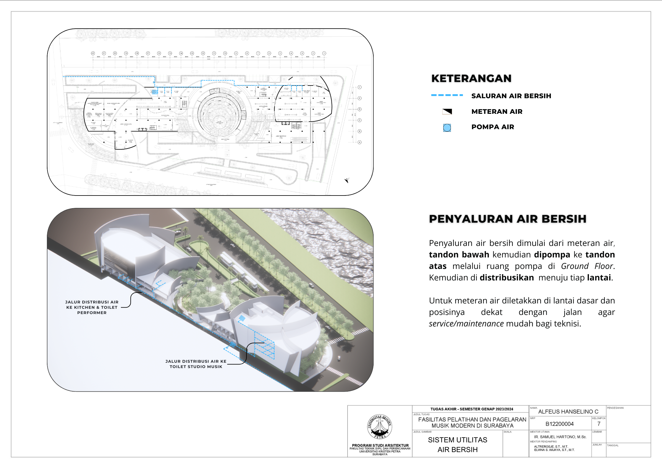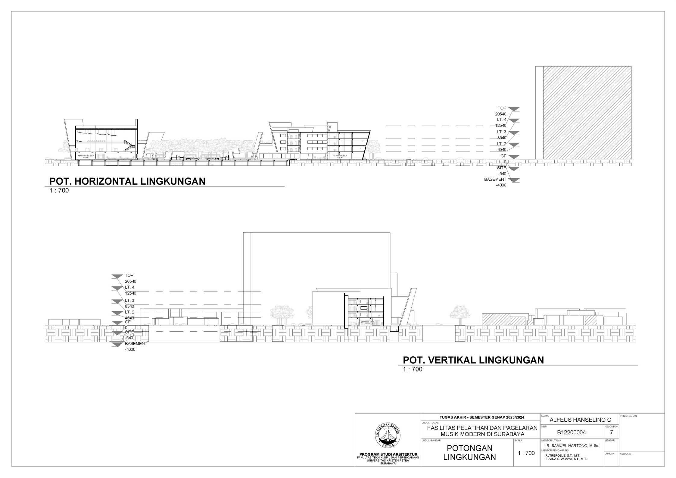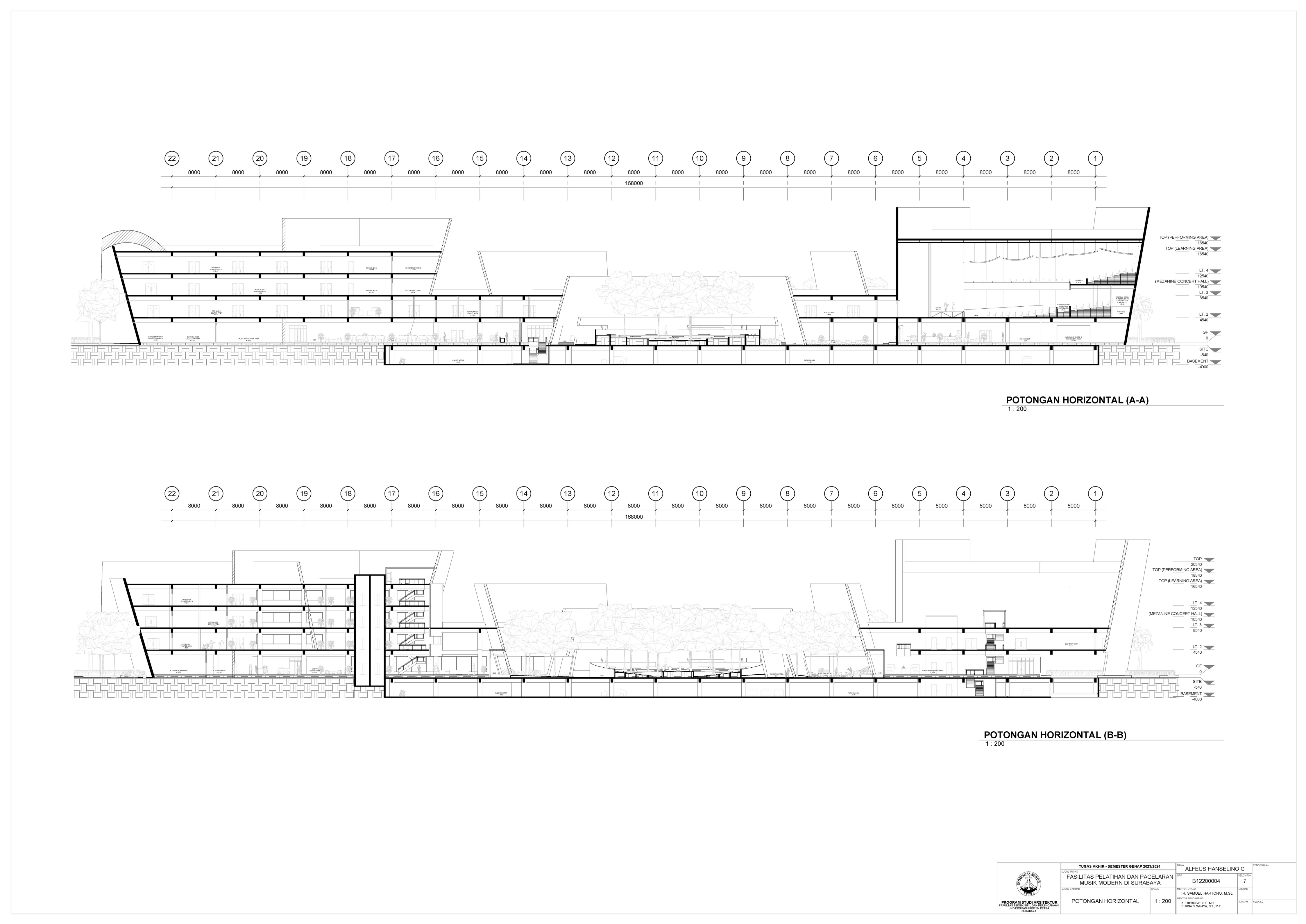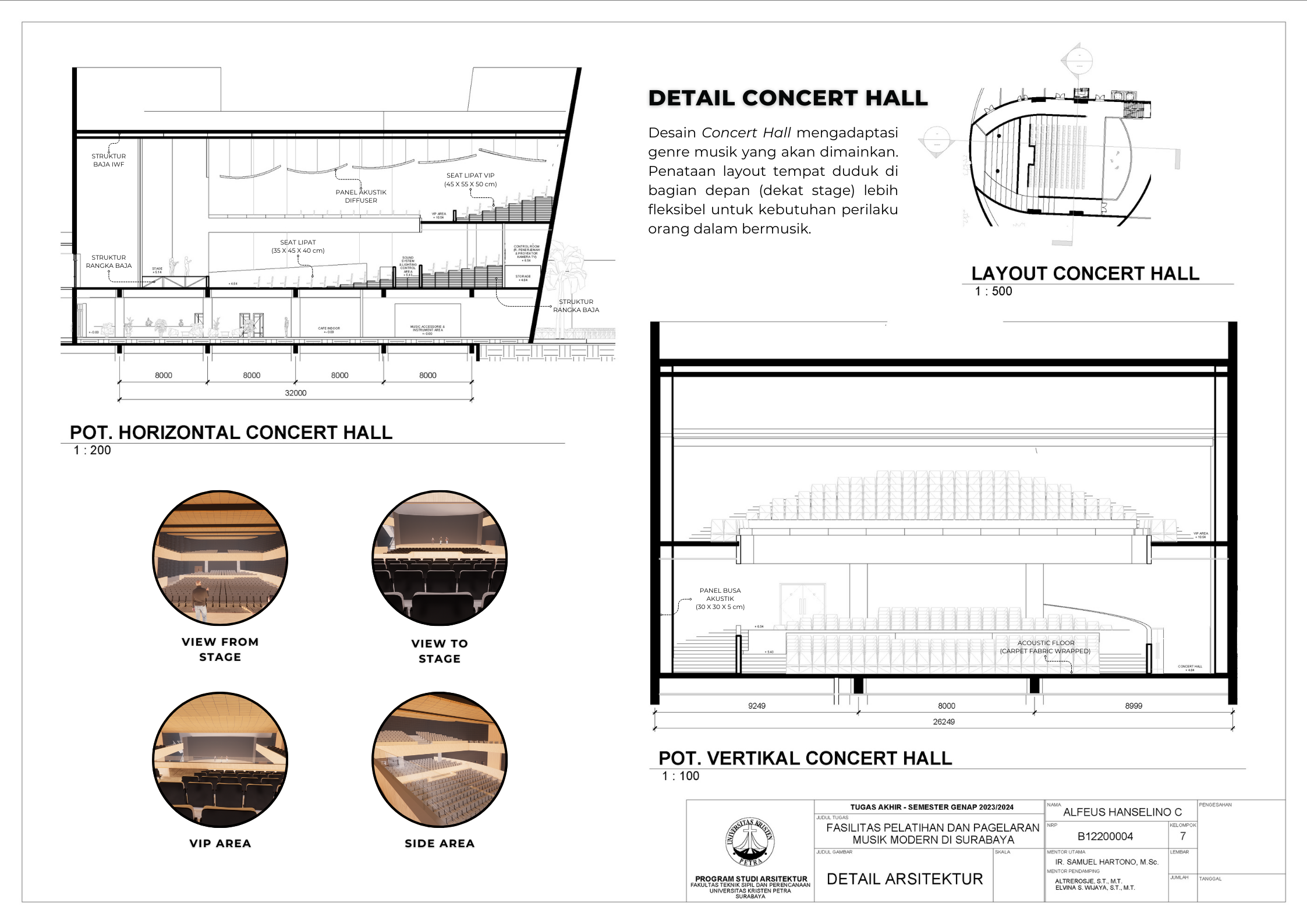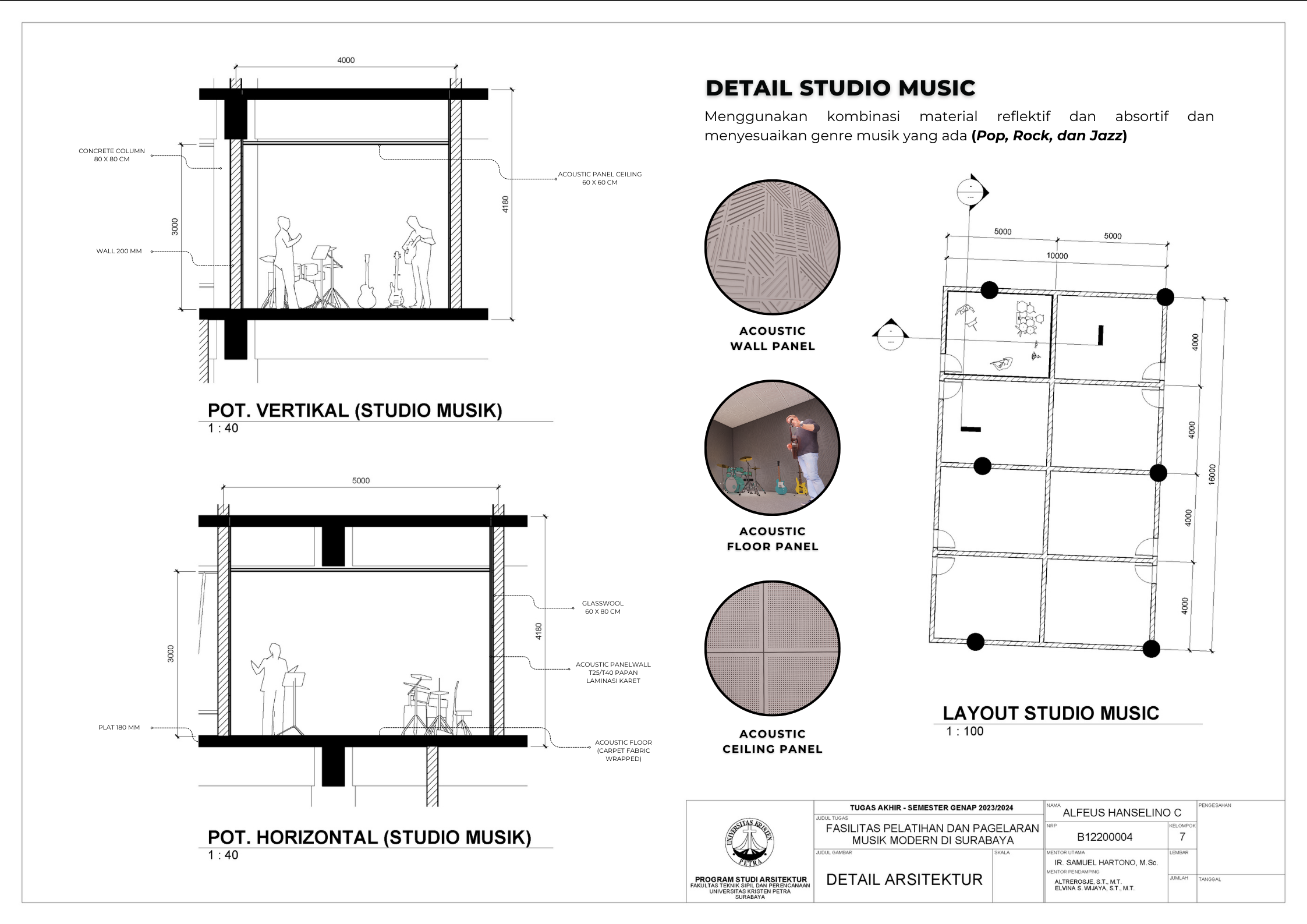 Musik merupakan sebuah seni yang dihasilkan melalui intuisi untuk mencipta sebuah gubahan nada dan harmoni. Salah satu jenis musik yang masih terus berkembang mengikuti teknologi zaman adalah musik modern. Kota Surabaya telah menjadi salah satu saksi lahirnya musisi hebat di Indonesia. Di era sekarang, musik modern menjadi bahasa universal dan diminati oleh banyak orang. Namun, perkembangan musik sendiri masih belum setara dengan fasilitas yang mewadahinya. Fasilitas pelatihan dan pagelaran musik belum mencerminkan identitas musik dan juga arti sebuah ruang bermusik. Realitanya banyak studio musik di Surabaya yang belum memenuhi baku kualitas akustik sehingga aktivitas para pelaku kegiatan bermusik menjadi kurang optimal. Perencanaan fasilitas pelatihan dan pagelaran musik modern di Surabaya bertujuan untuk memfasilitasi orang dalam bermusik (musisi hingga orang awam). Fasilitas ini mencakup tiga fungsi, yaitu Learning, Exhibition, dan Performing. Fasilitas utama adalah Concert Hall sebagai ruang konser musik dan Studio Musik (kursus, latihan, dan rekaman). Sedangkan fasilitas pendukung berupa pameran musik, toko dan alat perlengkapan musik, dan café. Fasilitas ini berfokus pada tiga genre musik modern, yaitu musik pop, rock, dan jazz. Dari perencanaan desain, pendekatan yang digunakan adalah pendekatan akustik menggunakan teori Aural Architecture. Tujuannya untuk mewujudkan karakter ruang bermusik dan pengalaman spasial orang secara audio dan visual, serta memperhatikan kenyamanan akustik bagi pengguna di dalam ruang konser.