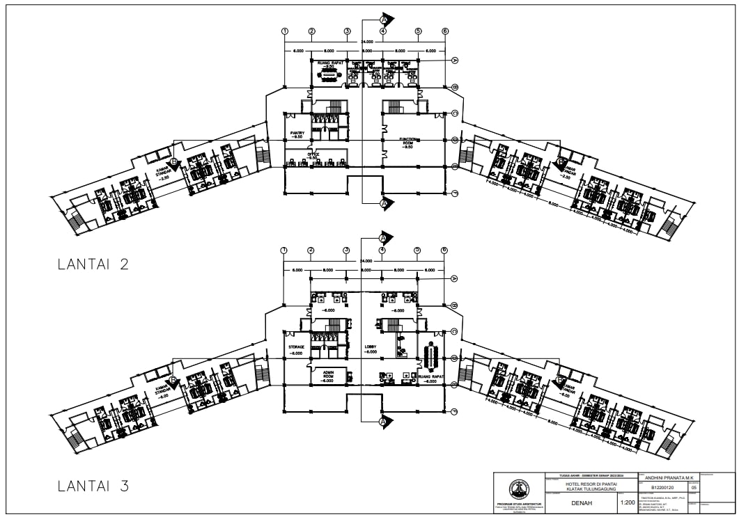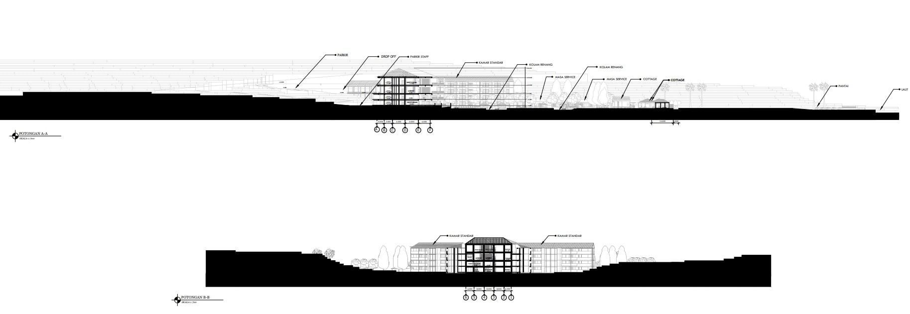 Kabupaten Tulungagung merupakan salah satu kabupaten di Jawa Timur yang berada pada wilayah laut selatan Jawa yang memiliki potensi alam pantai yang dapat dimanfaatkan sebagai pusat pariwisata. Salah satu pusat pariwisata di Kabupaten Tulungagung adalah Pantai Klatak, yang mana area tersebut dilewati oleh Jalur Lintas Selatan Pulau Jawa sehingga memudahkan akses pengunjung menuju Pantai Klatak. Namun, area tersebut belum terdapat fasilitas yang memperkenalkan Pantai Klatak kepada wisatawan yang datang, sehingga akan lebih baik jika wisatawan dapat kenal dan merasakan tinggal ditengah alam pesisir dari Pantai Klatak dari fasilitas penginapan berupa hotel resor bintang 4. Pendekatan yang diambil merupakan pendekatan sirkulasi yang mana memberikan suatu makna dan kesan terhadap ruang yang terbentuk dalam desain. Dalam sirkulasi tersebut terdapat hubungan antar ruang yang optimal serta membentuk suatu vista dari pengalaman ruang yang dirasakan. Perencanaan fasilitas penginapan bertujuan untuk mengakomodasi para wisatawan yang ingin kenal serta menikmati keindahan alam pesisir di Pantai Klatak. Dalam desain, fasilitas yang ditawarkan berupa standar hotel resor bintang 4 yang mana terdapat fasilitas penginapan resor, kamar standar, spa, kolam renang, restoran, serta area lansekap yang dikelilingi oleh alam pesisir. Semua area fasilitas yang di desain, memanfaatkan secara optimal dari alam pedisir dari Pantai Klatak sehingga membentuk sebuah karakteristik ruang dengan menciptakan suasana yang diinginkan.