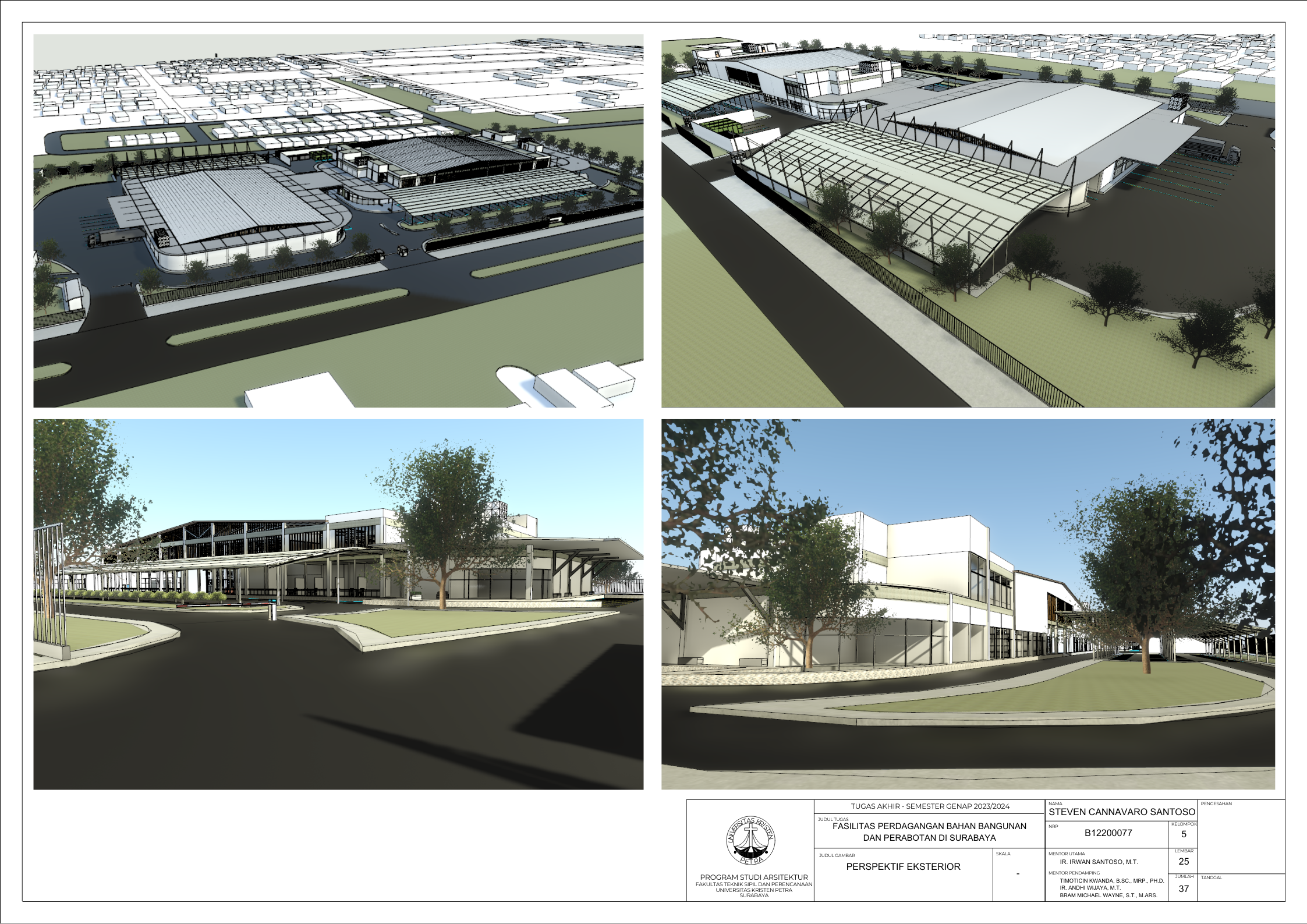 Kecamatan Sambikerep merupakan bagian dari kota Surabaya yang berfokus pengembangan pada bidang pembangunan perumahan dan hal ini dapat dilihat dari banyaknya perumahan. Kecamtan Sambikerep yang berukuran 20,43 km² dengan jumlah penduduk sekitar 60.375 orang dan kepadatan penduduk setiap km² 2.957 orang. Pembangunan perumahan seperti Citraland, Alam Galaxy, Graha Natura, dan Pakuwon Indah. Ini merupakan beberapa perumahan di Kecamatan Sambikerep. Pengembangan ini merupakan rencana pembangunan yang difokuskan untuk perumahan dan komersial. Fasilitas perdagangan bahan bangunan dan perabotan bertujuan memfasilitasi dalam memenuhi kebutuhan dalam pembangunan baik interior dan eksterior. Fasilitas perdagangan juga ini berfungsi untuk mendukung kebutuhan pertumbuhan penduduk dalam bidang pembangunan dan diharapkan bangunan ini dapat berperan dalam rencana pembangunan di Sambikerep ke depan dalam konstruksi perumahan dan komersiil. Lokasi pembangunan berada di pembangunan jalan baru bernama Jalan Radial yang dibuat untuk mengurangi kemacetan yang ada di jalan lontar yang sudah direncanakan oleh Pemerintah Kota Surabaya dan dalam masa pembangunan yaitu dari Citraland ke Pakuwon. Masalah utama desain bagaimana cara bangunan mempertahankan kualitas barang tetap bagus. Dengan data di atas diharapkan dapat mendukung dalam menyelesaikan masalah tersebut menggunakan pendekatan perancangan sirkulasi dan perancangan fungsional. Dari kedua pendekatan yang ditentukan ini dapat mendukung dalam mendesain bangunan dan memberikan pengaruh positif terhadap pembangunan kedepannya dalam perumahan dan industri di kecamatan Sambiekerep.