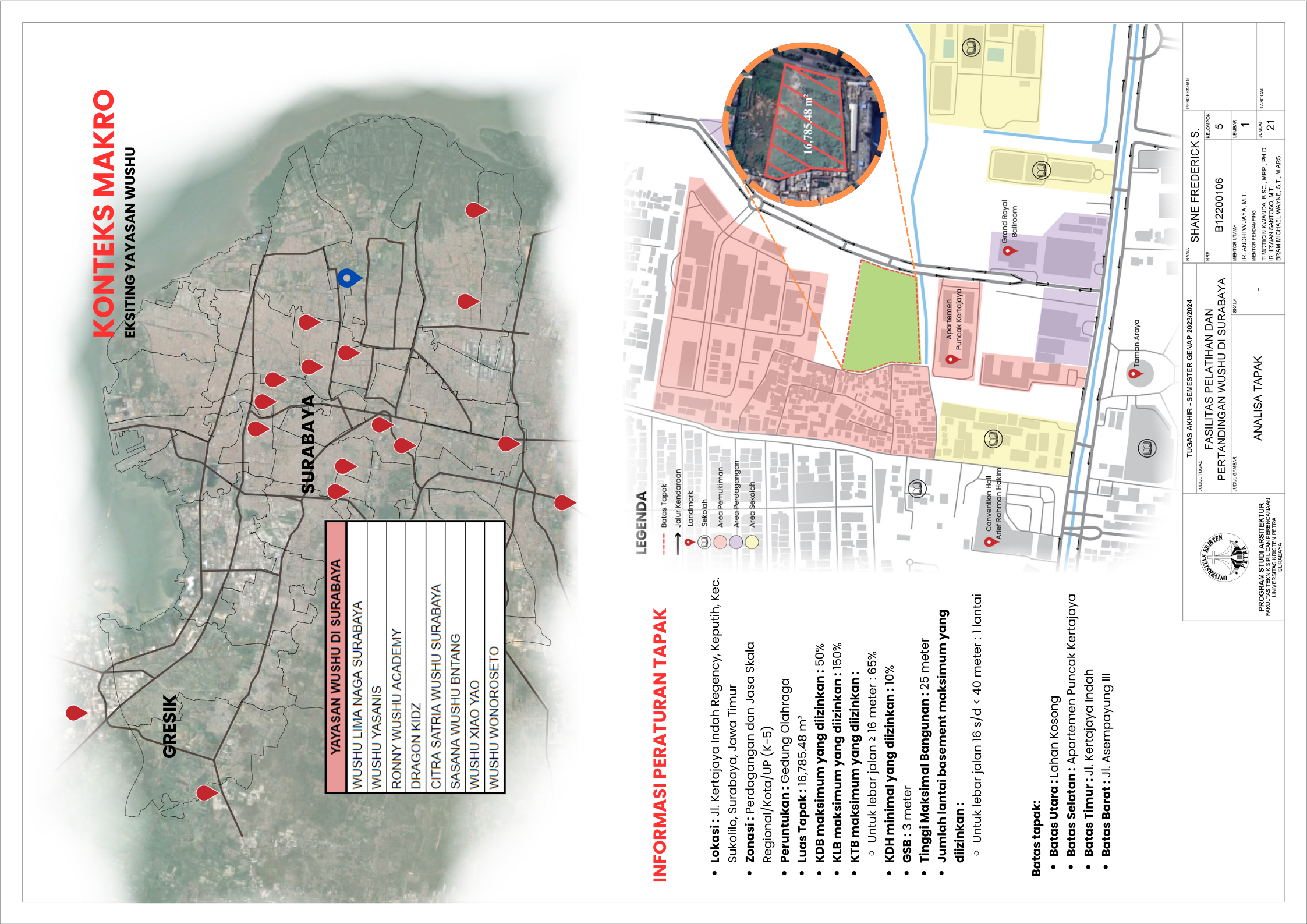 Wushu adalah sebuah seni bela diri berasal dari China, yang telah menjelma menjadi daya tarik khusus di Indonesia. Di kota Surabaya menjadi pusat utama minat wushu di Indonesia, terutama untuk kalangan generasi muda. Lebih dari sekadar bela diri atau pencapaian, wushu juga sebagai olahraga rekreasi dan kebugaran yang tak hanya meningkatkan kesehatan fisik tetapi juga membawa nilai-nilai disiplin, kontrol diri, dan pengembangan aspek mental. Meskipun popularitas wushu terus berkembang namun, masih terdapat sejumlah tantangan, seperti kurangnya infrastruktur pelatihan yang memadai, kesadaran masyarakat yang perlu ditingkatkan, kurangnya koordinasi, dan kurangnya perhatian terhadap keselamatan atlet. Perancangan fasilitas pelatihan dan pertandingan wushu bertujuan memenuhi kebutuhan atlet untuk dapat menunjang perfoma mereka menjadi lebih baik. Selain itu, fasilitas juga dirancang untuk memberikan pendidikan dan pengalaman pengunjung, terutama untuk menarik minat generasi muda. Pendekatan yang digunakan adalah pendekatan perilaku. Pendekatan tersebut diterapkan dengan memahami pola perilaku atlet saat berlatih, serta perilaku pengunjung pada saat ingin mengetahui tentang wushu. Dengan memahami pola perilaku atlet dan pengunjung, fasilitas bertujuan untuk menciptakan ruang yang memiliki alur yang nyaman dan baik untuk kedua pihak.