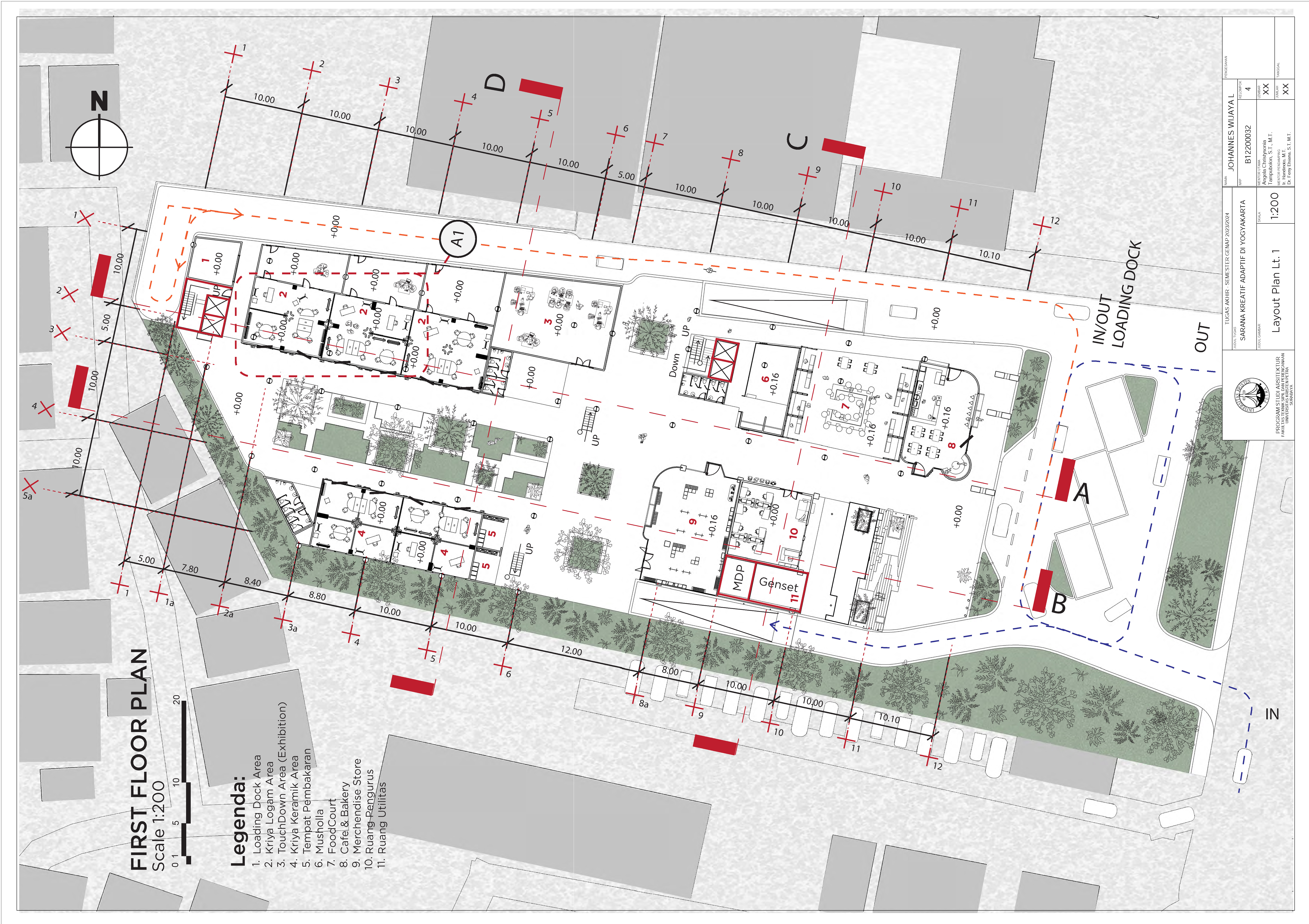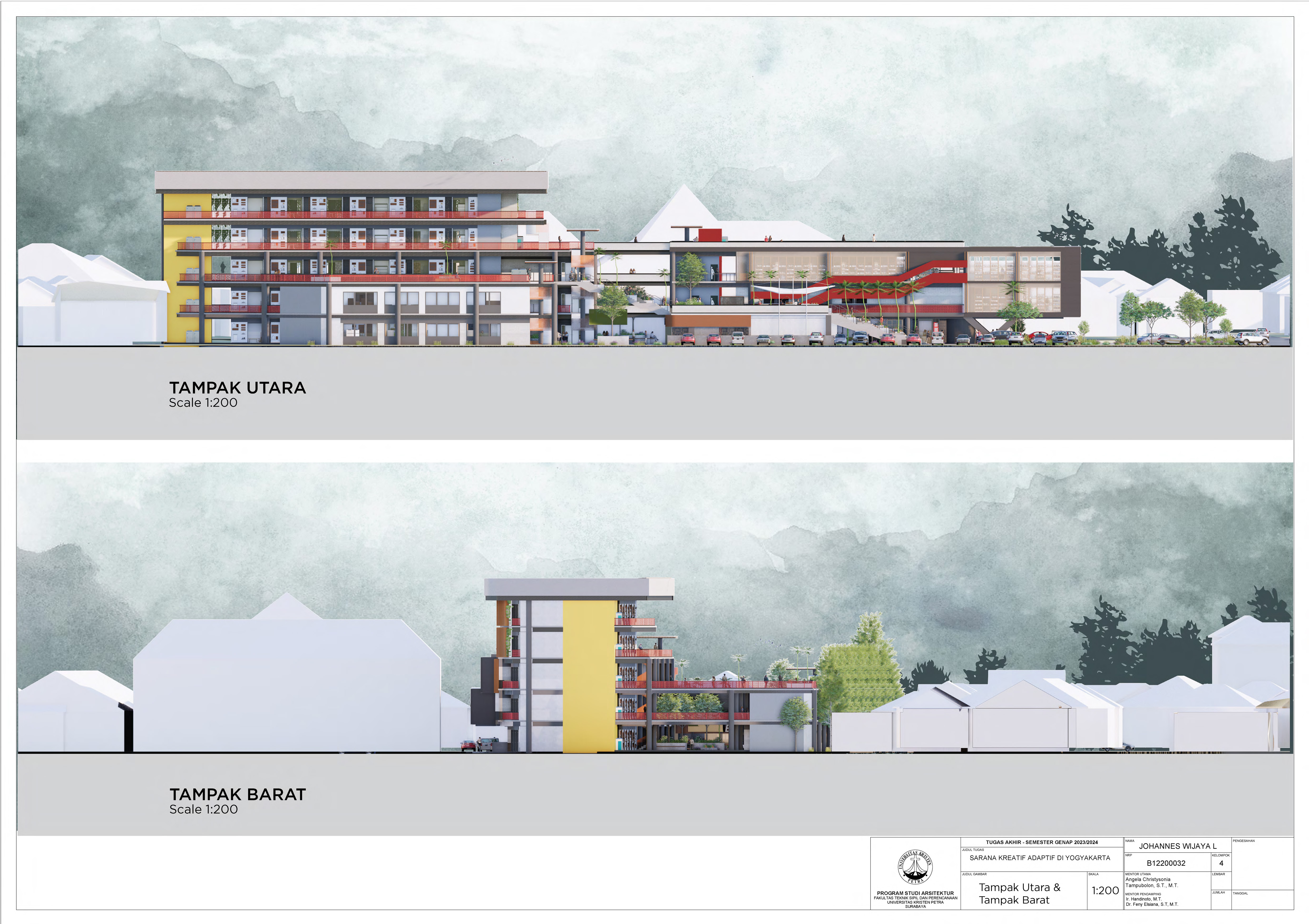 Sarana Kreatif Adaptif di Yogyakarta merupakan perancangan sebuah sarana kerja kreatif yang berfungsi bukan hanya sebagai tempat kerja, tetapi juga sebagai simpul kreatif yang diharapkan dapat menggairahkan kaum muda dan pekerja kreatif di Yogyakarta untuk berkarya, berdaya, dan saling berkolaborasi, terutama dalam mengandalkan daya cipta dan daya pikirannya sebagai Sumber Daya Manusia yang berkualitas. Desain ini memastikan bahwa bangunan tidak hanya menjadi tempat fungsional, tetapi juga pusat seni yang hidup dan terus beradaptasi seiring waktu, mencerminkan kehidupan dan kreativitas penggunanya. Yogyakarta berpotensi menjadi tempat sumber daya cipta dan kreativitas baik dari masyarakat hingga anak mudanya karena potensi tersebut terbentang mulai dari sumber daya manusia hingga kultur kreativitas yang melekat pada kota ini. Hal itu sejalan dengan bahasan ekonomi kreatif perlu mencakup pertimbangan terhadap seluruh ekosistemnya, di mana terdapat simpul kreatif sebagai salah satu elemennya. Metode pendekatan yang dipilih adalah pendekatan spasial, karena sarana kreatif yang dirancang untuk menyediakan fasilitas dan ruang yang lengkap dan fleksibel di mana ruang yang ada dapat beradaptasi sesuai dengan berbagai aktivitas, seperti bekerja, berpikir, berkolaborasi, dan memamerkan karya sesuai pada kebutuhan dari pekerjaan dari setiap subsektornya. Hasil perancangan merupakan suatu sarana kreatif dengan ruang dan zoning yang mengikuti proses berpikir kreatif serta fleksibel dan dapat beradaptasi dengan kebutuhan penggunanya, sarana ini dapat memperkenalkan setiap subsektor ekonomi kreatif yang ada di dalamnya tanpa mengganggu pekerja kreatif yang sedang bekerja.