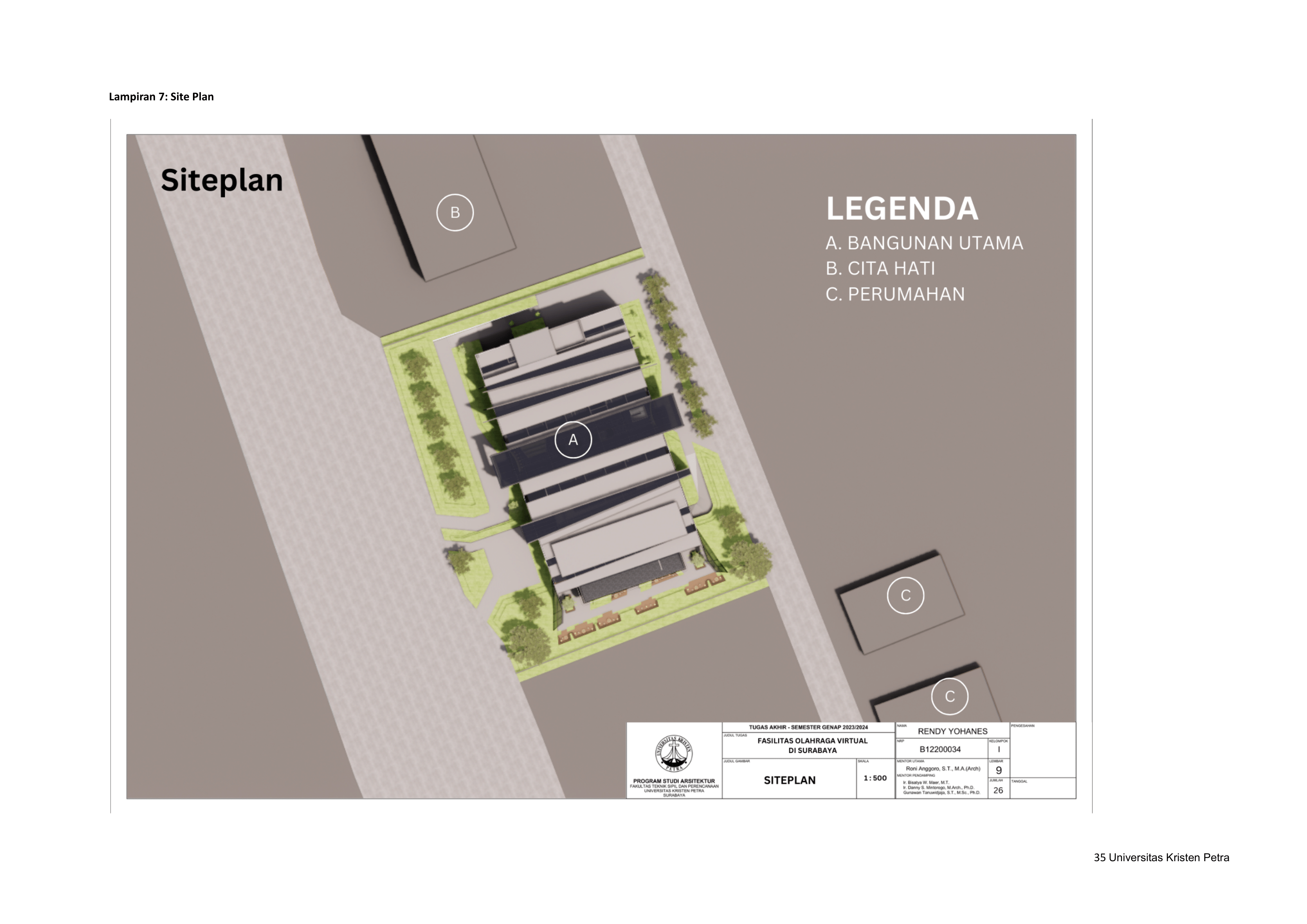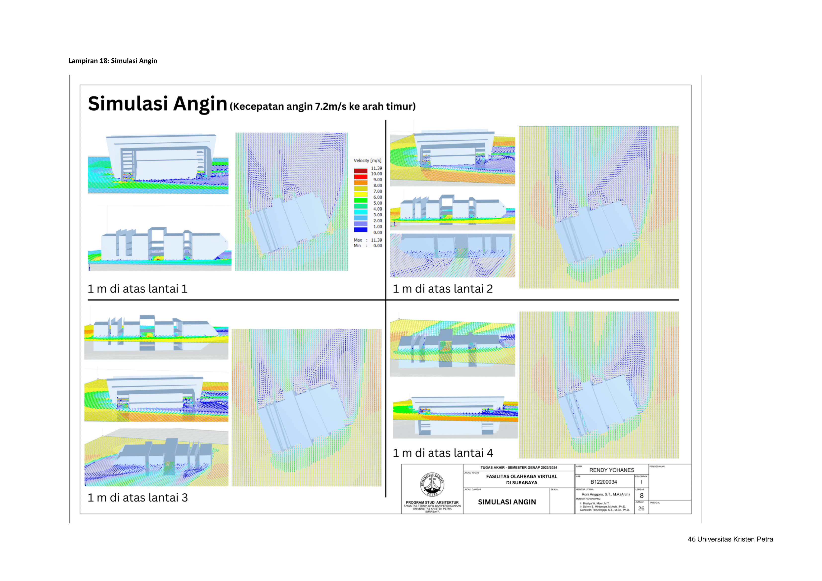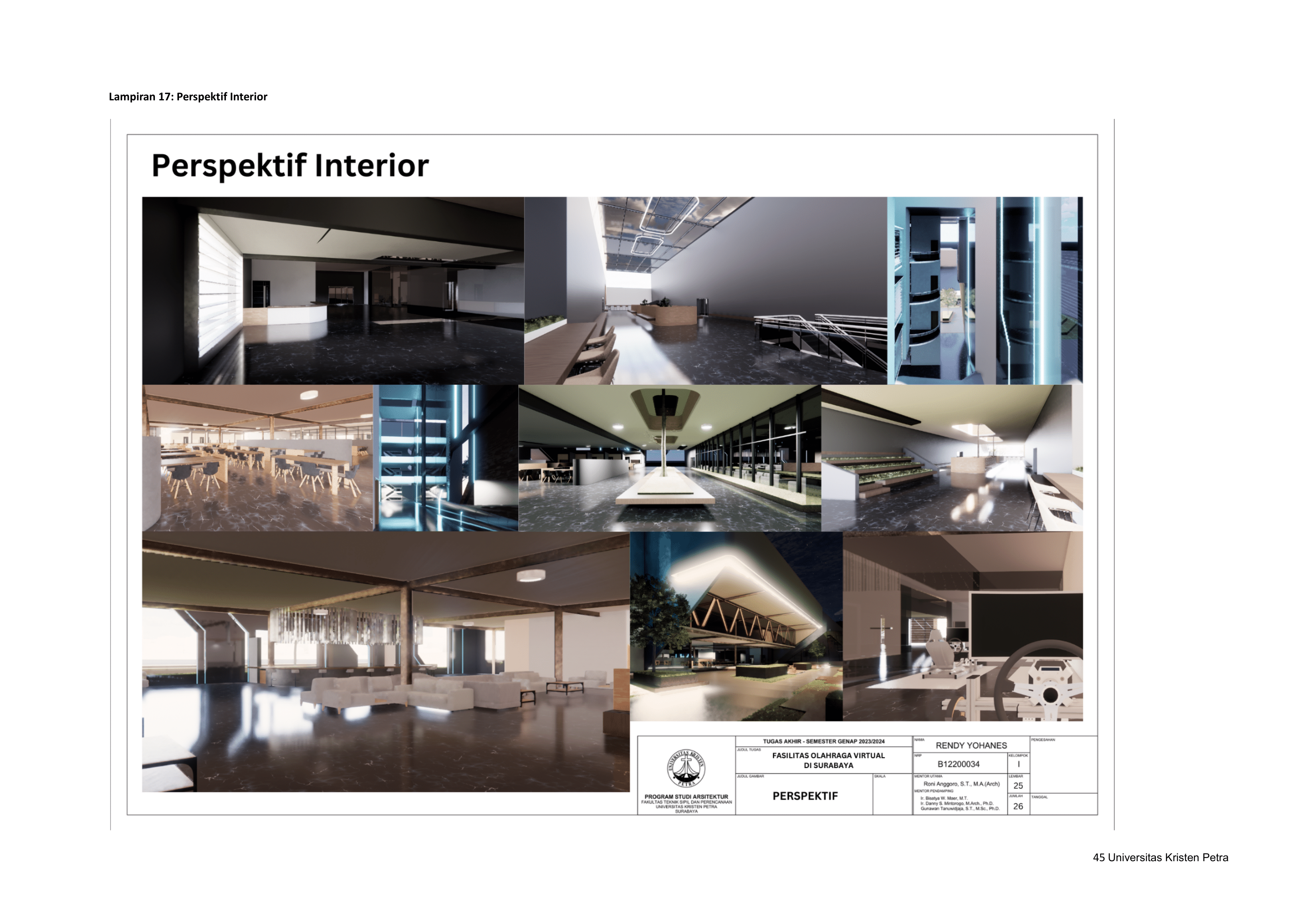 Perkembangan digital sekarang semakin berkembang, selain di bidang informasi, dunia digital juga semakin berkembang pada bidang permainan digital. Permainan digital seperti permainan komputer dan gadget sekarang sudah mulai menyentuh titik teratas dalam arti sudah susah untuk dikembangkan lagi dalam sisi cerita dan grafik dari permainan itu. Di sisi lain, digital pada bidang permainan sekarang sedang mengembangkan permainan dengan mendeteksi gerakan manusia yang akan terbaca oleh permainan tersebut, sehingga memungkinkan manusia untuk bermain sambil melakukan aktifitas fisik. Fasilitas Olahraga Virtual ini dibangun untuk meningkatkan aktivitas fisik masyarakat Surabaya, karena datanya sendiri menunjukkan bahwa orang di Indonesia memiliki standar aktivitas fisik yang rendah. Dengan adanya fasilitas ini, diharapkan tingkat aktivitas fisik masyarakat bisa meningkat dan menghasilkan pengalaman baru dalam bermain game yang sekarang bisa bersamaan dilakukan dengan berolahraga. Tentu dengan menggunakan teknologi yang cukup berkembang ini, fasilitas ini mendapatkan tantangan baru mengenai kebutuhan energi listrik yang cukup besar, sehingga fasilitas ini memiliki pendekatan menggunakan energi sesedikit mungkin, dan mengandalkan teknologi yang dapat menghasilkan energi khususnya listrik. Strategi yang digunakan kebanyakan pemanfaatan udara alami, dan pencahayaan alami dengan memanfaatkan kipas serta pembagian ruang yang menggunakan udara alami dan menggunakan udara buatan.