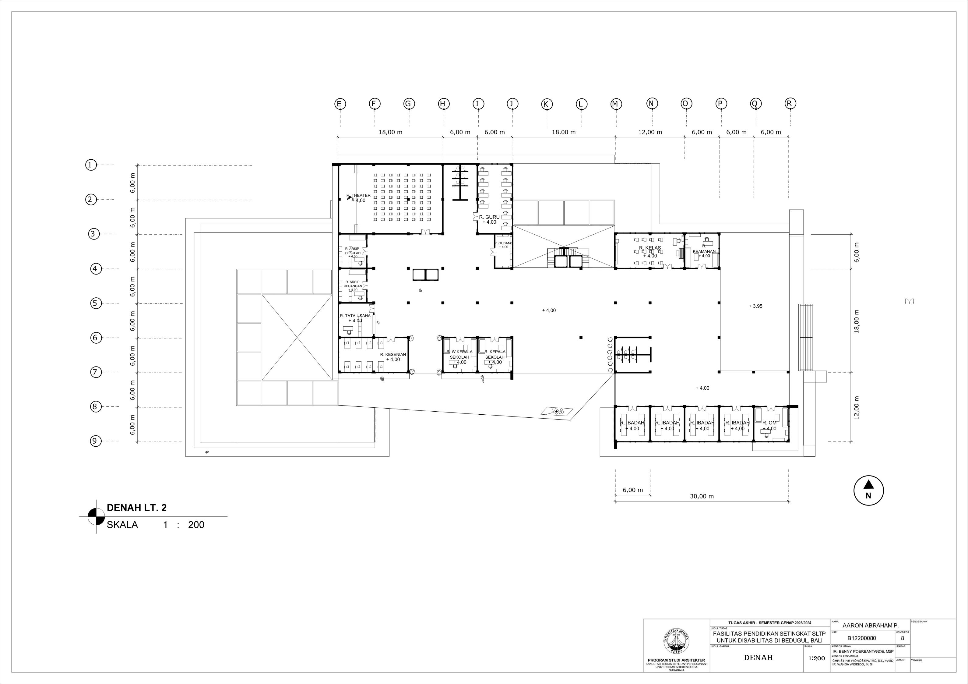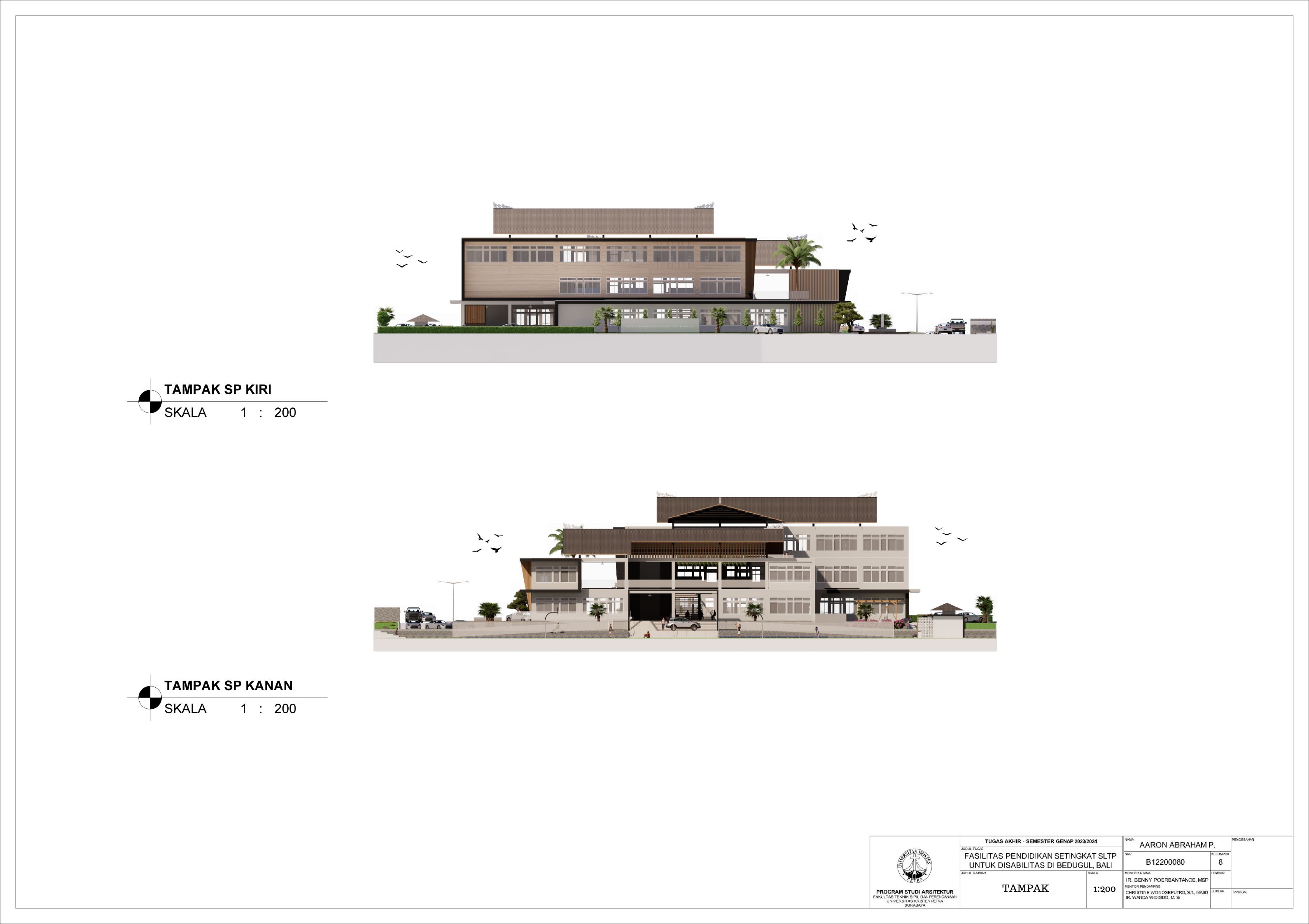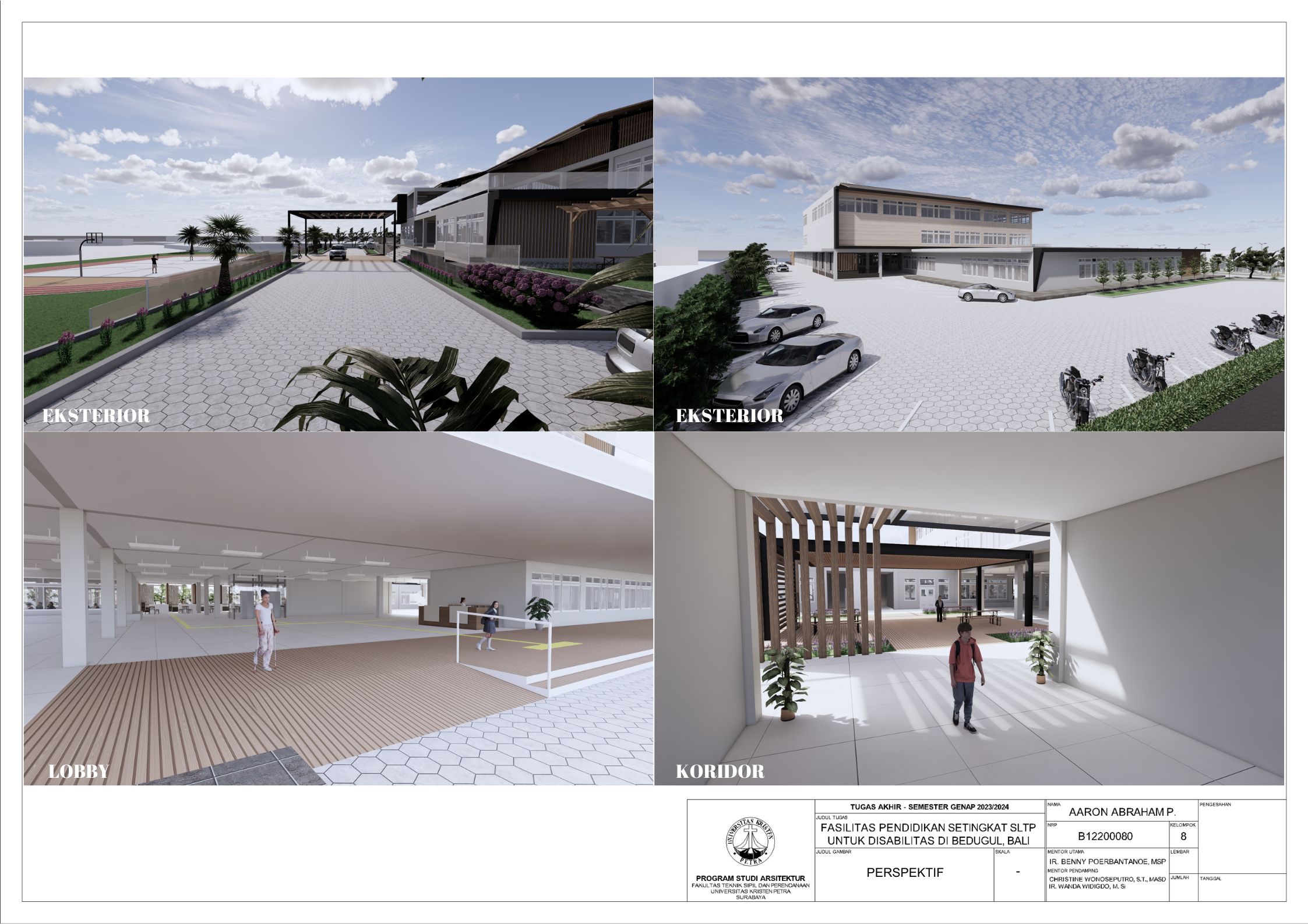 Sekolah disabilitas adalah sekolah yang menyediakan sarana pendidikan bagi penyandang disabilitas agar penyandang disabilitas memiliki kesempatan pendidikan yang sama dengan non-disabilitas. Sekolah disabilitas yang dirancang adalah sekolah tingkat SMP atau SLTP, yang memiliki 3 tingkat kelas, yaitu kelas 1, kelas 2, dan kelas 3. Setiap kelas terbagi menjadi 3 ketunaan yang didalami yaitu tuna daksa, tuna rungu, dan tuna netra, dengan kebutuhan yang berbeda. Tuna daksa yang memerlukan desain yang dapat diakses setiap ruangannya dengan desain khusus seperti ramp yang sesuai dengan standar, tuna netra dengan guide path yang memadai, dan tuna rungu dengan desain kelas yang kedap suara agar siswa dapat berkonsentrasi dengan maksimal. Dengan adanya kebutuhan khusus masing-masing ketunaan, maka harus memperdalami perilaku siswa. Maka dari itu pendekatan yang digunakan adalah metode pendekatan perilaku disabilitas agar dapat menciptakan sebuah sekolah yang dapat menyesuaikan perilaku dan sesuai dengan kebutuhan siswa disabilitas. Sekolah yang dirancang sesuai dengan perilaku siswa dapat melatih kemandirian, pemberdayaan, dan integrasi siswa dalam masyarakat.