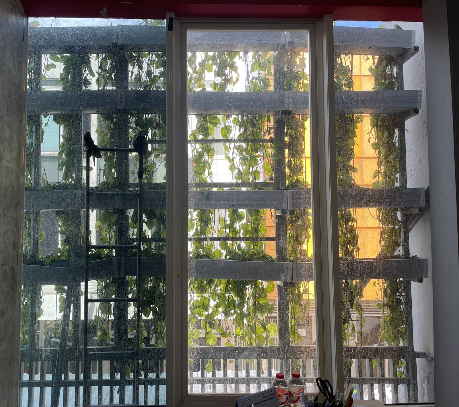 Berkurangnya lahan hijau akibat dari pembangunan yang terus menerus menyebabkan banyak bangunan yang menerapkan sistem vertical garden yang memiliki banyak manfaat seperti sebagai penyaring polusi udara, memberikan kenyamanan thermal pada bangunan, serta kesehatan dan well-being manusia. Namun penggunaan vertical garden khususnya dalam bentuk secondary facade dapat berdampak pada ketidaknyamanan visual salah satunya karena faktor ketebalan, jenis tanaman, maupun penyusunan vertical garden yang justru menyebabkan terhalangnya cahaya alami untuk masuk ke dalam bangunan sehingga menyebabkan bertambahnya penggunaan energi oleh pencahayaan buatan. Tujuan penelitian ini adalah mengevaluasi nilai DF dari modul fasad dengan kerapatan daun yang berbeda dan mendesain modul green façade yang memberikan kenyamaman pencahayaan yang memenuhi standar minimum pencahayaan SNI untuk aktivitas ruang kantor. Penelitian ini bermanfaat untuk membantu arsitek dalam mendesain green facade pada ruang kantor agar memiliki pencahayaan yang optimal. Penelitian ini menggunakan metode kuantitatif melalui eksperimen dengan membuat 3 modul green facade lalu menghitung nilai DF dari ketiga modul tersebut lalu dianalisa modul fasad manakah yang memiliki nilai DF yang paling memenuhi standar SNI untuk ruang kantor.