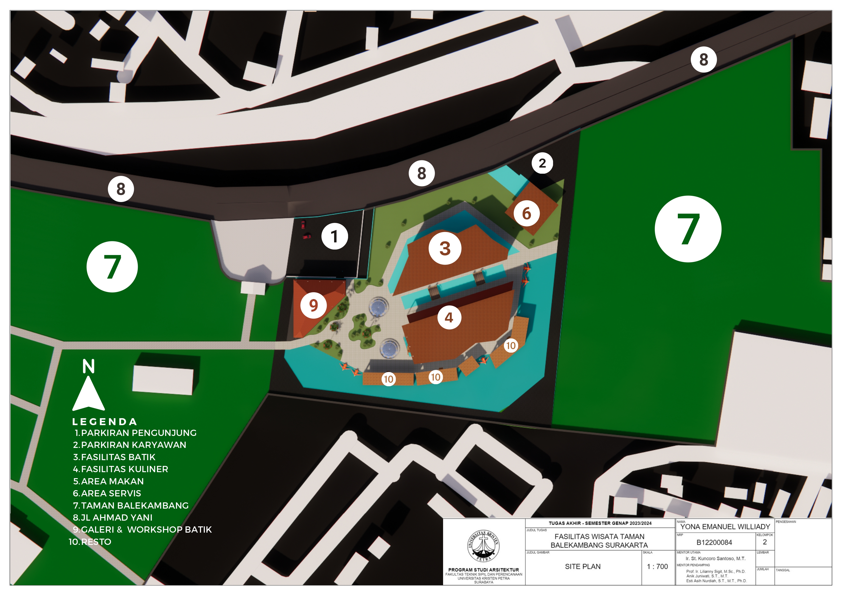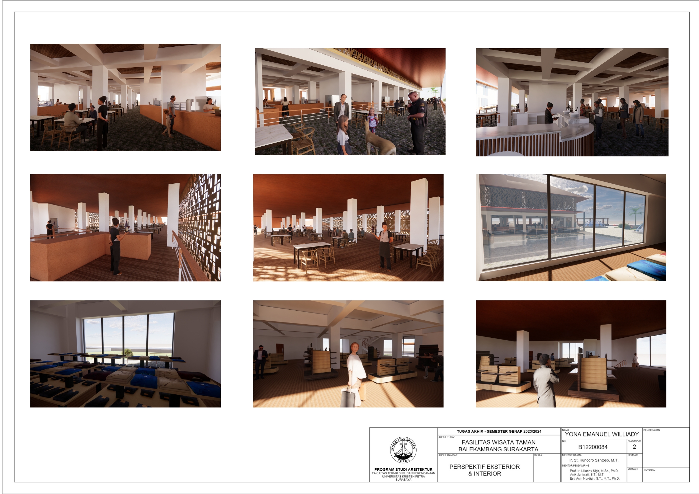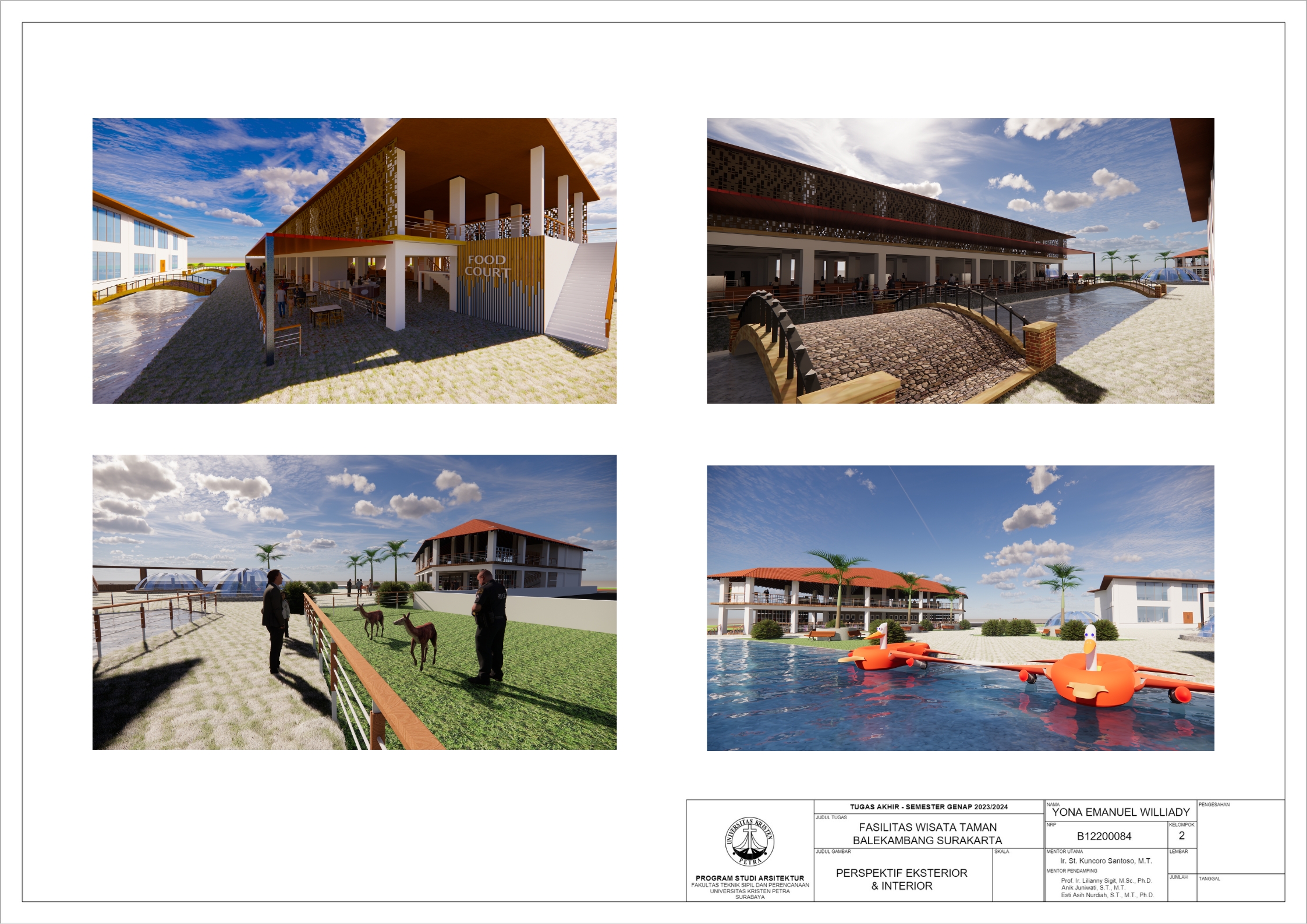 Tugas akhir ini bertujuan untuk menjalankan revitalisasi taman Balekambang yang bertujuan untuk mengembangkan fasilitas wisata di taman Balekambang Surakarta, dengan fokus pada pengembangan dan peningkatan wisata khas dari Surakarta. Adapun tujuan utama proposal ini adalah menciptakan lingkungan yang mendukung pertumbuhan daerah wisata di taman Balekambang Surakarta, meningkatkan daya tarik wisatawan, dan memberikan pengalaman wisata yang memuaskan bagi penduduk setempat dan wisatawan. Proposal ini mencakup langkah-langkah konkrit dalam pengembangan infrastruktur wisata, pelatihan tenaga kerja, promosi setempat, dan pengembangan inovasi infrastruktur. Target dari fasilitas wisata ini ialah parawisata dan masyarakat sekitar yang ingin menikmati hal-hal khas Surakarta agar lebih mudah untuk menemukan dan dapat menikmati semua ciri khas dari Surakarta. Melalui usaha pembangunan fasilitas wisata di taman Balekambang ini diharapkan parawisata dan masyarakat sekitar yang ingin menikmati hal khas dari Surakarta akan lebih mudah untuk menikmati semua yang khas dari Surakarta.