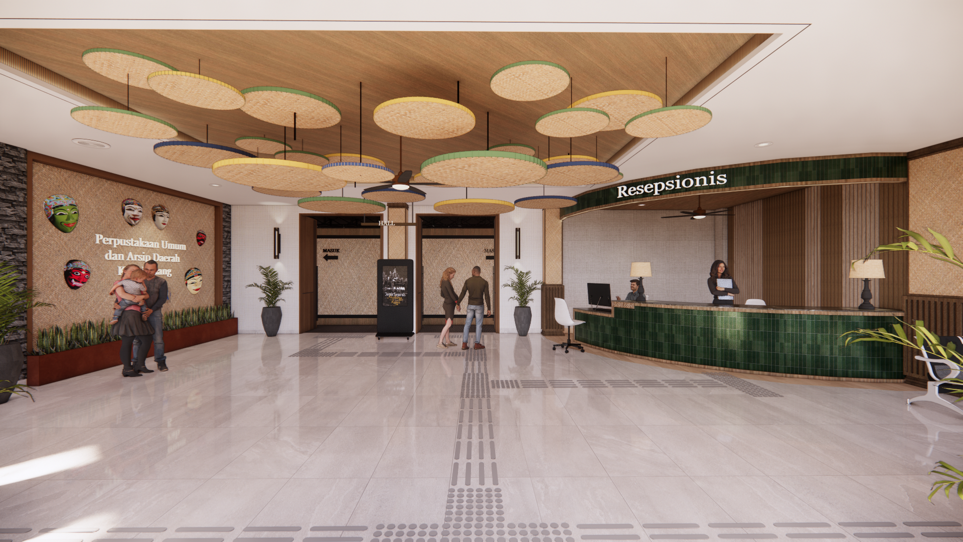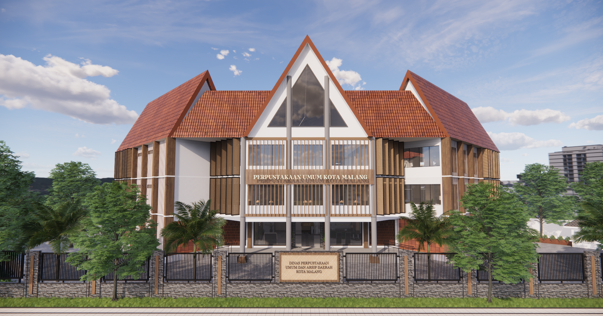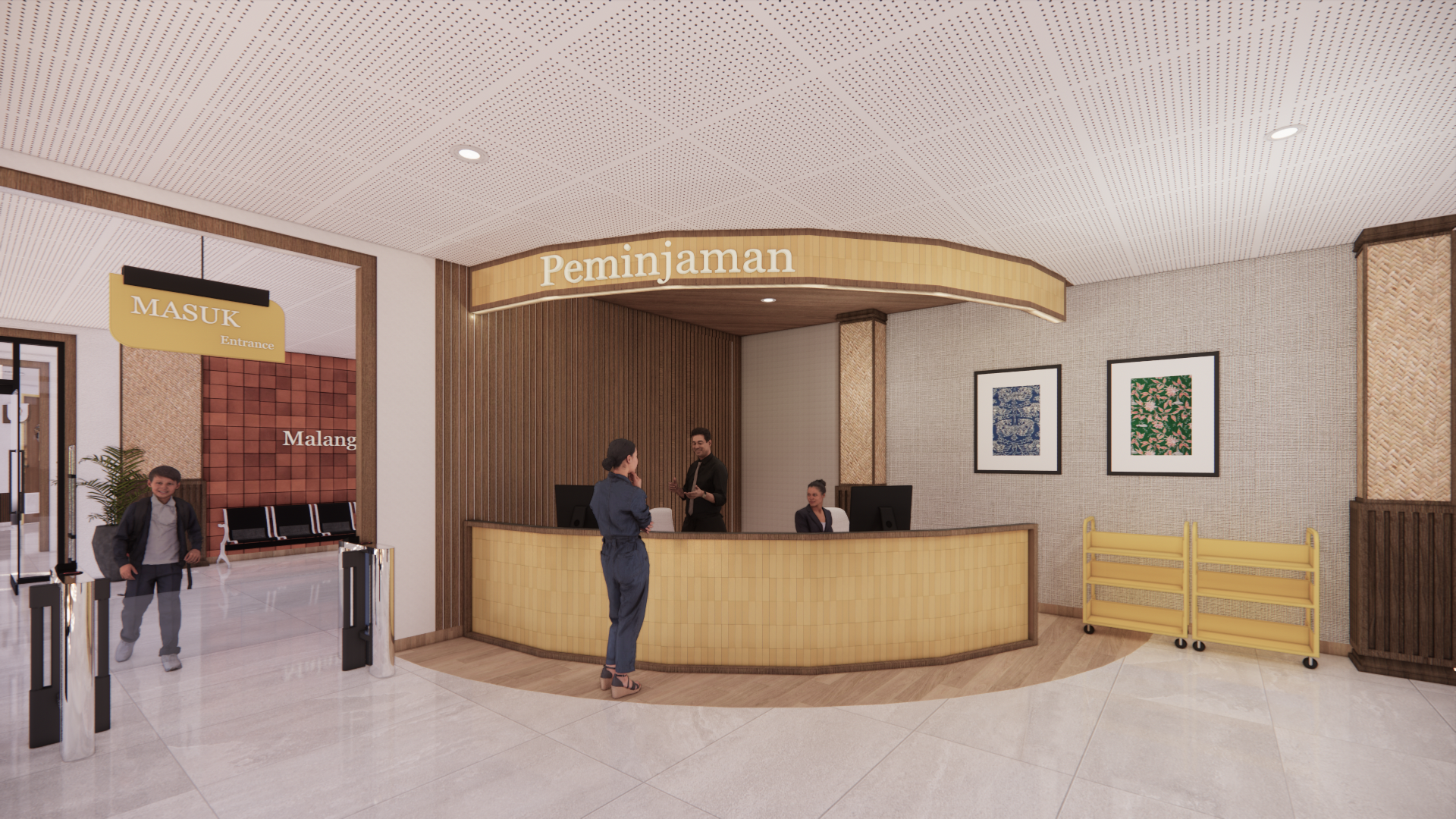 Kota Malang sebagai “Kota Pelajar” memiliki perpustakaan sebagai lembaga Pendidikan, berperan aktif dalam memberikan edukasi dan akses informasi bagi segala kalangan masyarakat. Seiring berkembangnya teknologi dan perubahan kebutuhan pengguna, perpustakaan tidak hanya sebagai tempat membaca buku, tetapi juga sebagai pusat pembelajaran multiliterasi yang memadukan berbagai jenis literasi, mulai dari literasi tekstual, visual, audio, performa dan digital, sehingga Perpustakaan Umum dan Arsip Daerah Kota Malang memerlukan penyesuaian dan perbaikan dalam desain interior. Redesain interior perpustakaan menggunakan metode Design Thinking. Hasil perancangan berupa desain interior Perpustakaan Umum dan Arsip Daerah Kota Malang dengan tema “Kepingan Malang” yang mendukung kegiatan multiliterasi dengan menggabungkan elemen, motif kultural dan sejarah lokal Kota Malang untuk meningkatkan minat baca, aksesibilitas, dan kualitas pendidikan non-formal di masyarakat Kota Malang.