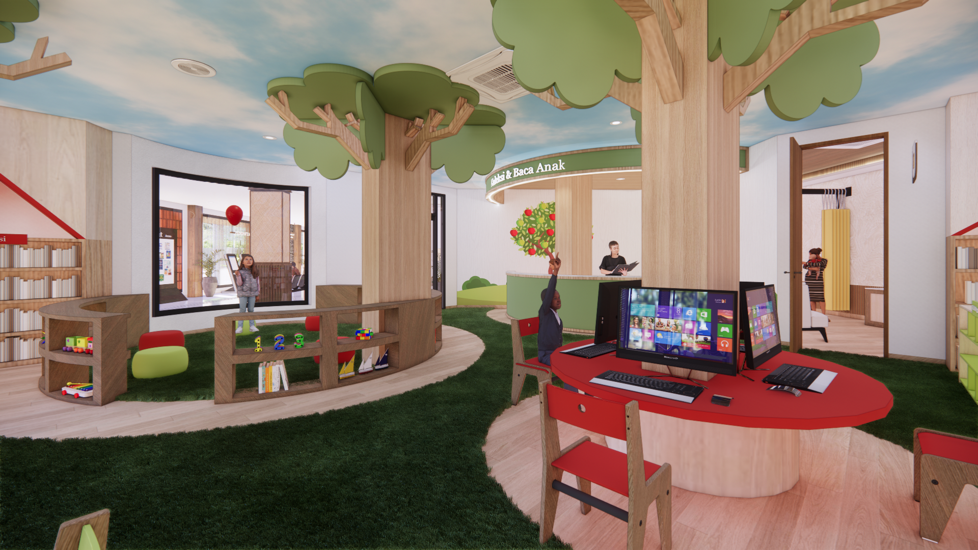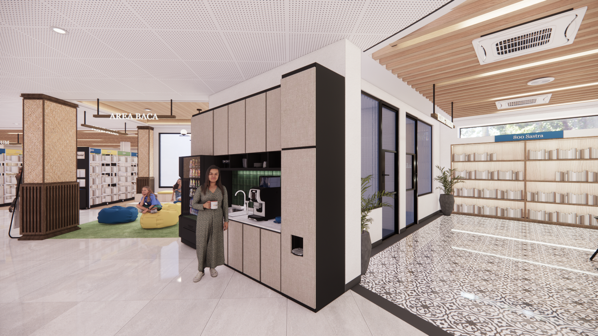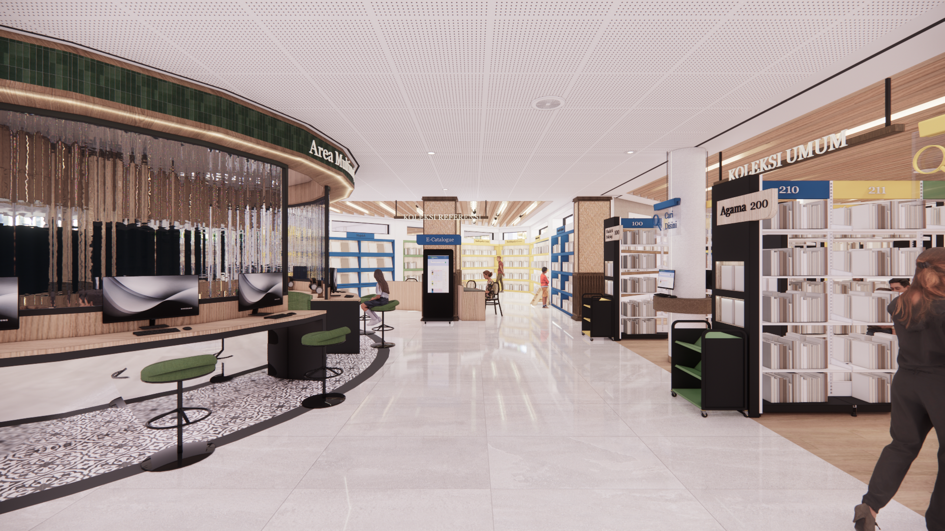 Kota Malang sebagai “Kota Pelajar” memiliki perpustakaan sebagai lembaga Pendidikan, berperan aktif dalam memberikan edukasi dan akses informasi bagi segala kalangan masyarakat. Seiring berkembangnya teknologi dan perubahan kebutuhan pengguna, perpustakaan tidak hanya sebagai tempat membaca buku, tetapi juga sebagai pusat pembelajaran multiliterasi yang memadukan berbagai jenis literasi, mulai dari literasi tekstual, visual, audio, performa dan digital, sehingga Perpustakaan Umum dan Arsip Daerah Kota Malang memerlukan penyesuaian dan perbaikan dalam desain interior. Redesain interior perpustakaan menggunakan metode Design Thinking. Hasil perancangan berupa desain interior Perpustakaan Umum dan Arsip Daerah Kota Malang dengan tema “Kepingan Malang” yang mendukung kegiatan multiliterasi dengan menggabungkan elemen, motif kultural dan sejarah lokal Kota Malang untuk meningkatkan minat baca, aksesibilitas, dan kualitas pendidikan non-formal di masyarakat Kota Malang.