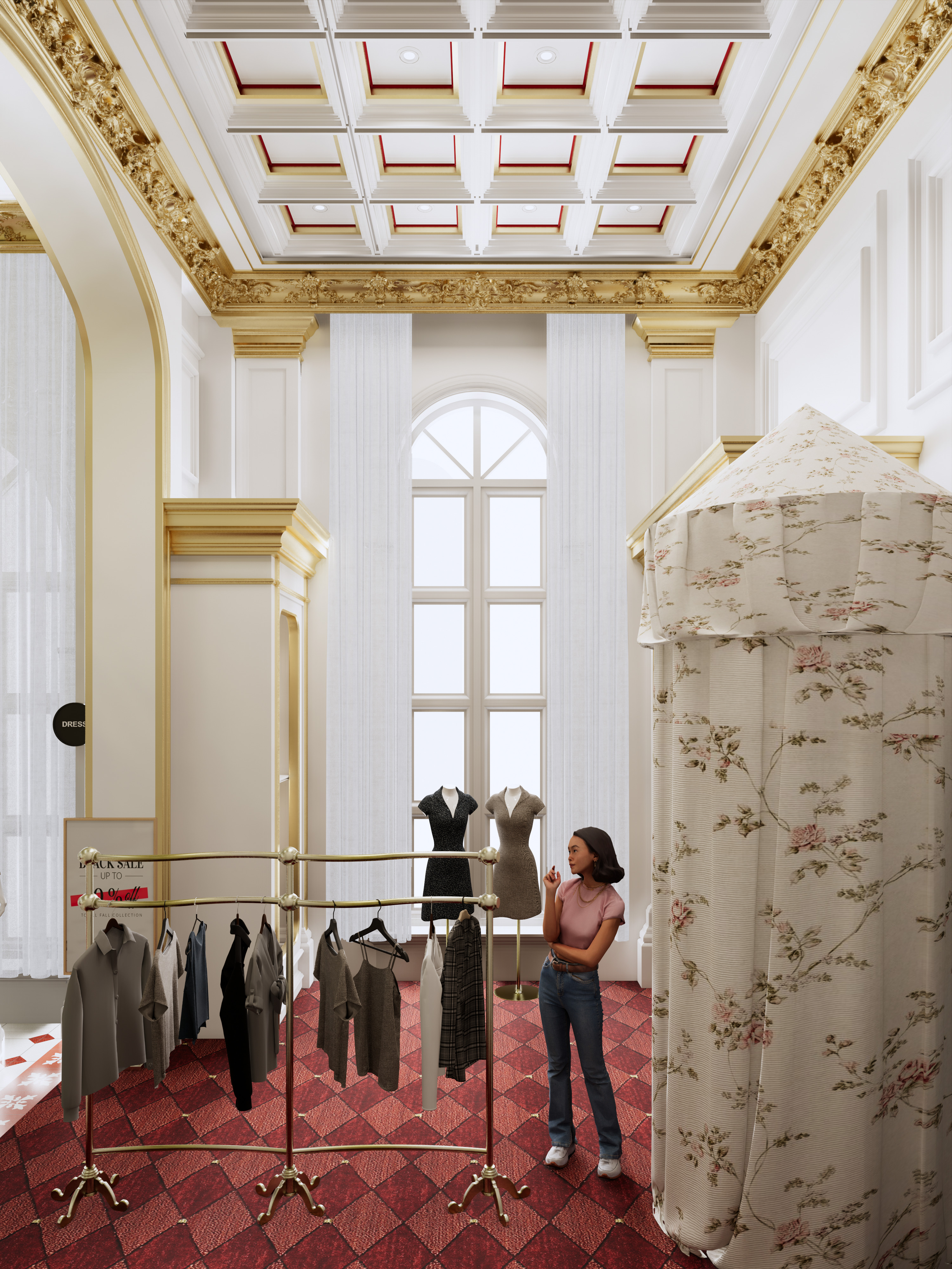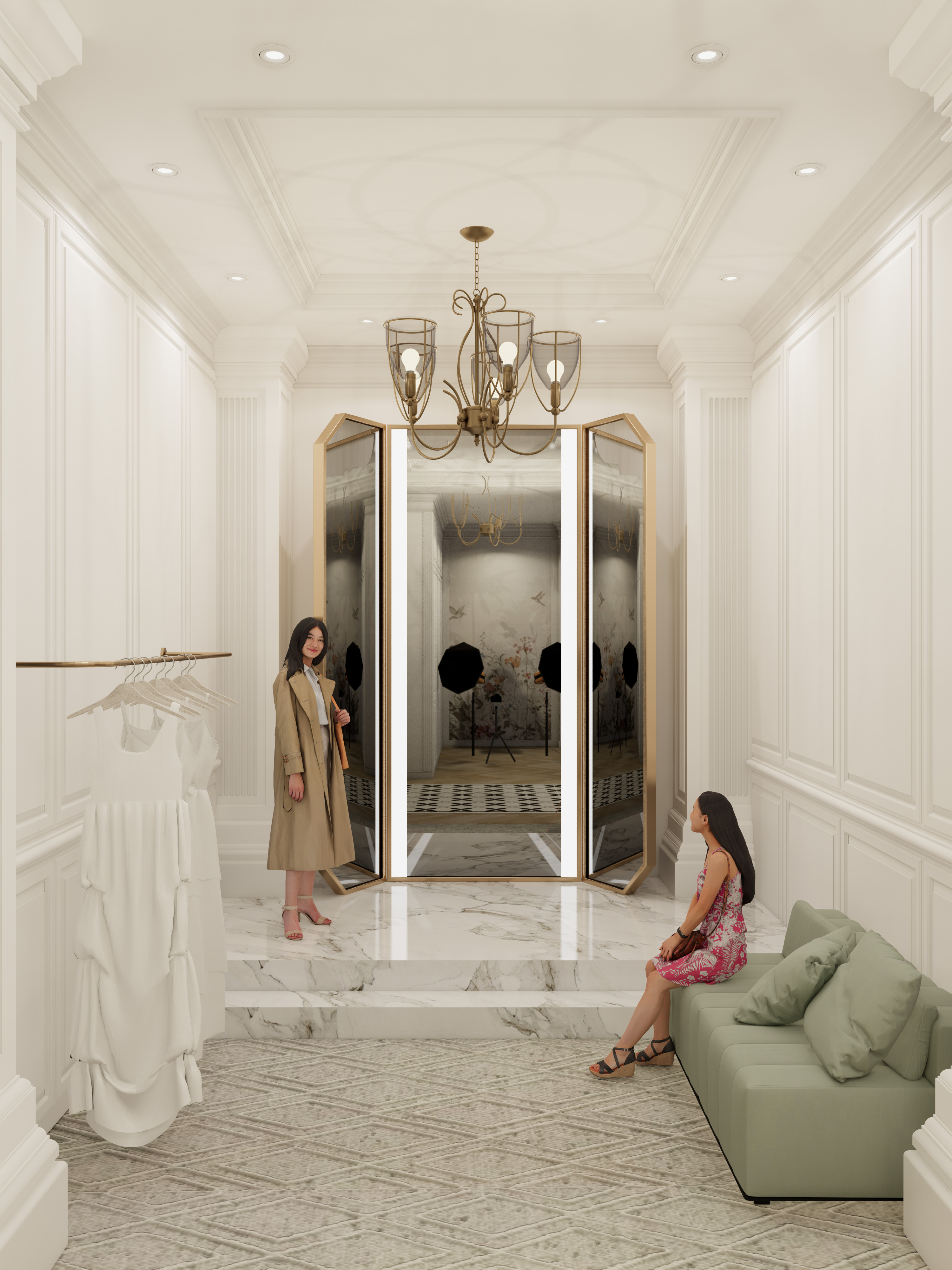 Ergonomi merupakan sebuah prinsip yang digunakan dalam perancangan sebuah ruang. Ergonomi dalam penerapanya menggunakan Antropometri sebagai acuan pengukuran yang standar sehingga konsumen merasa nyaman saat menggunakan perabot seperti meja dan kursi. Butik merupakan tempat untuk menjual baju dan aksesoris wanita lainnya seperti tas, dompet, kalung, dan juga sepatu. Aktifitas dalam butik adalah memilih dan membeli baju, namun perlu diketahui bahwa butik membutuhkan ruang fitting dan ruang tunggu. Desain dalam ruangan menjadi tidak nyaman apabila tidak menerapkan prinsip desain di dalamnya terutama pada ukuran lemari, ukuran sofa, dan ukuran meja, oleh karena itu prinsip ergonomi menjadi prioritas utama dalam desain ruang. Penelitian ini bertujuan untuk mengetahui bagaimana penerapan prinsip ergonomi dapat memenuhi kebutuhan klien secara menyeluruh. Metode yang digunakan ada beberapa tahap yaitu understand, observe, point of view, ideate, prototype, test, storytelling, pilot, dan business model. Tahapan berikut menjadi proses perancangan sebuah desain yang akan digunakan dalam perancangan sebuah butik.