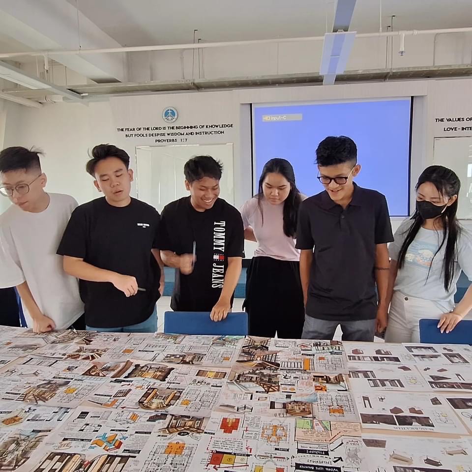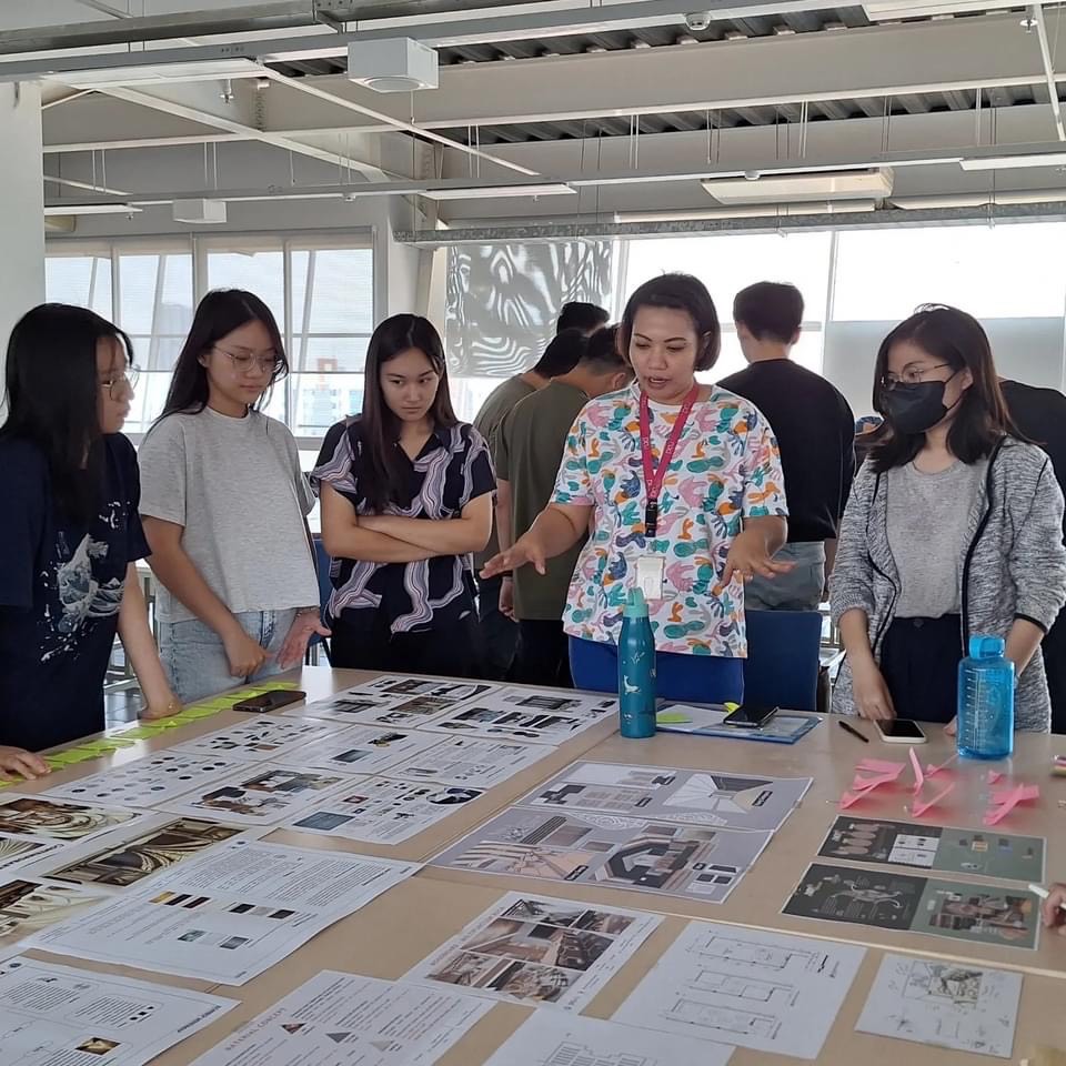 Mahasiswa Program Studi Desain Interior UK Petra sedang berproses ideate di studio gedung Q UK Petra pada tanggal 15 April 2024