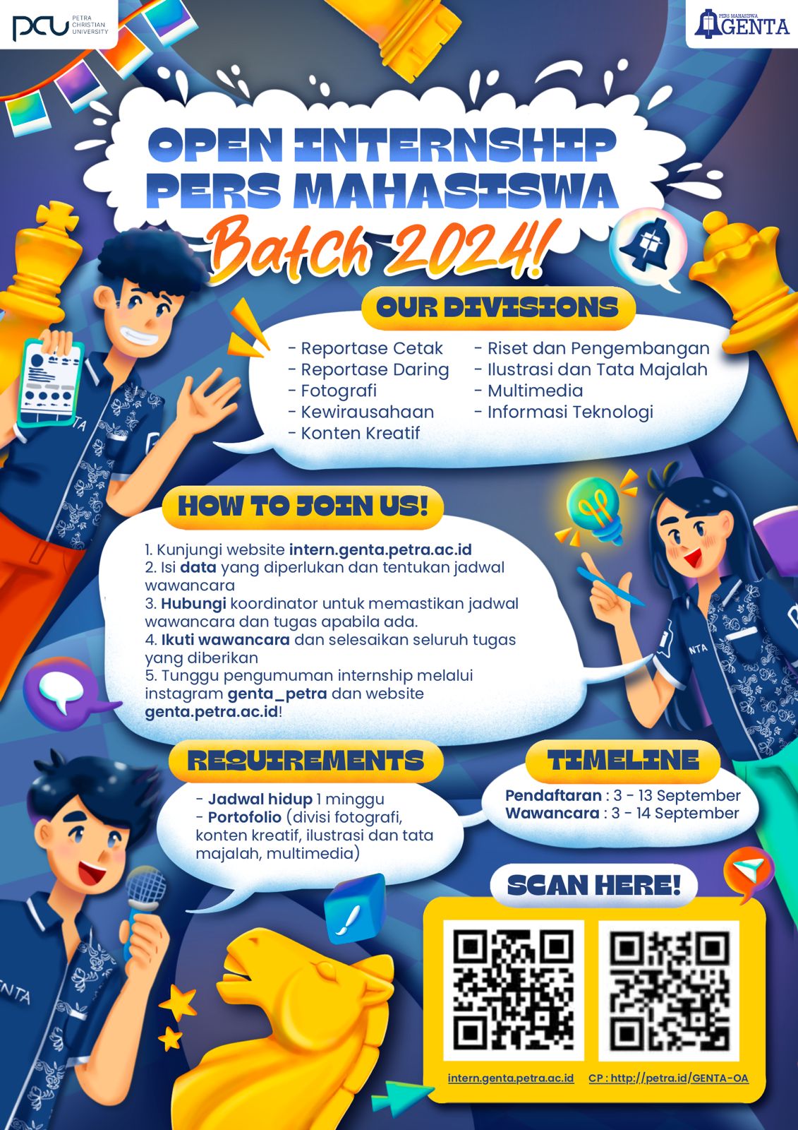 Pers Mahasiswa kembali membuka pintunya untuk Mahasiswa Baru bergabung menjadi keluarga besar GENTA sebagai tempat mereka untuk berkarya dan melatih kepemimpinan mereka.