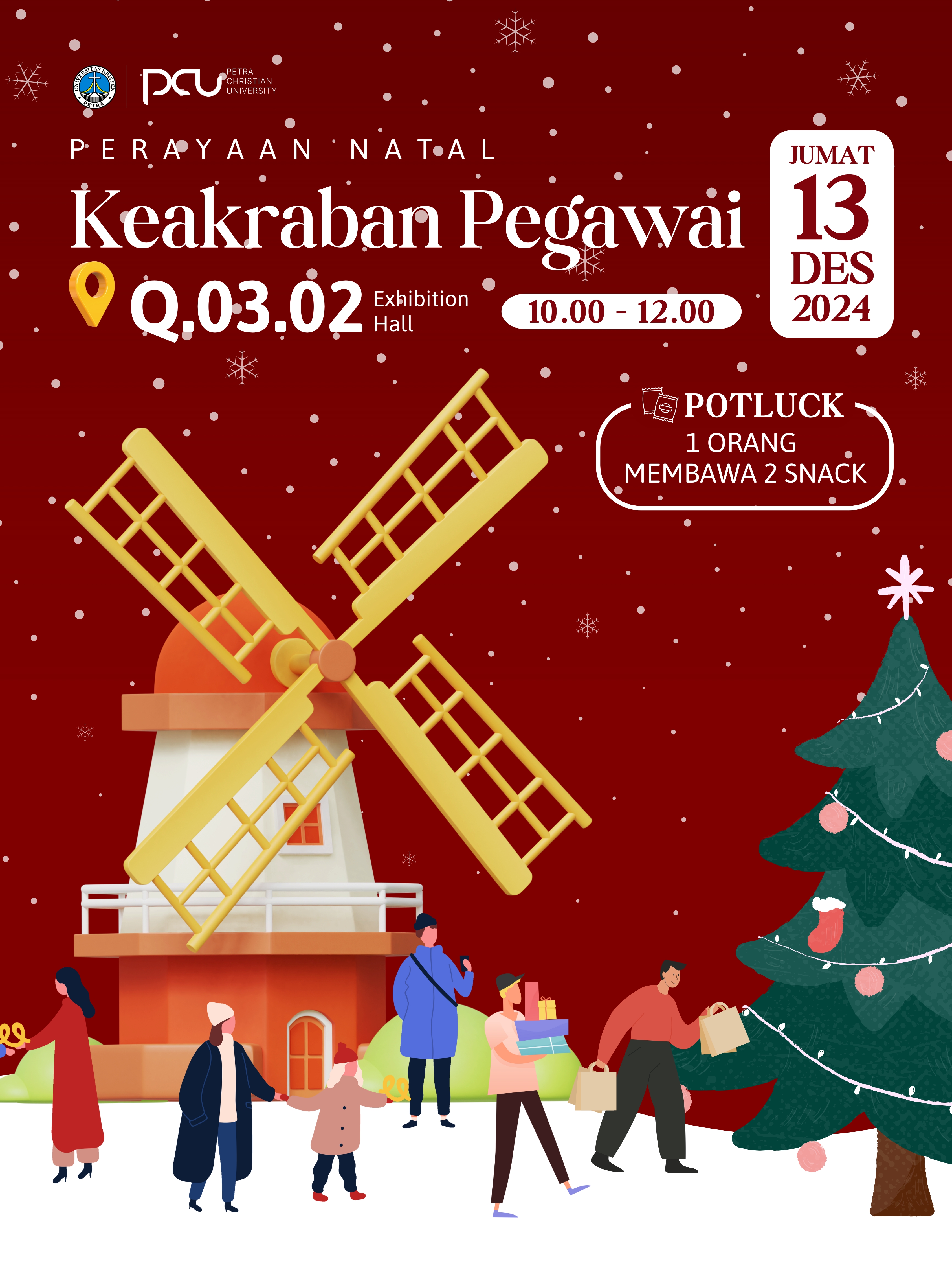 Dalam rangkaian acara Natal 2024 dilingkungan UK Petra Surabaya, pada tanggal 13 Desember 2024, jam 10.00 - 12.00 WIB bertempat gedung Q.302.