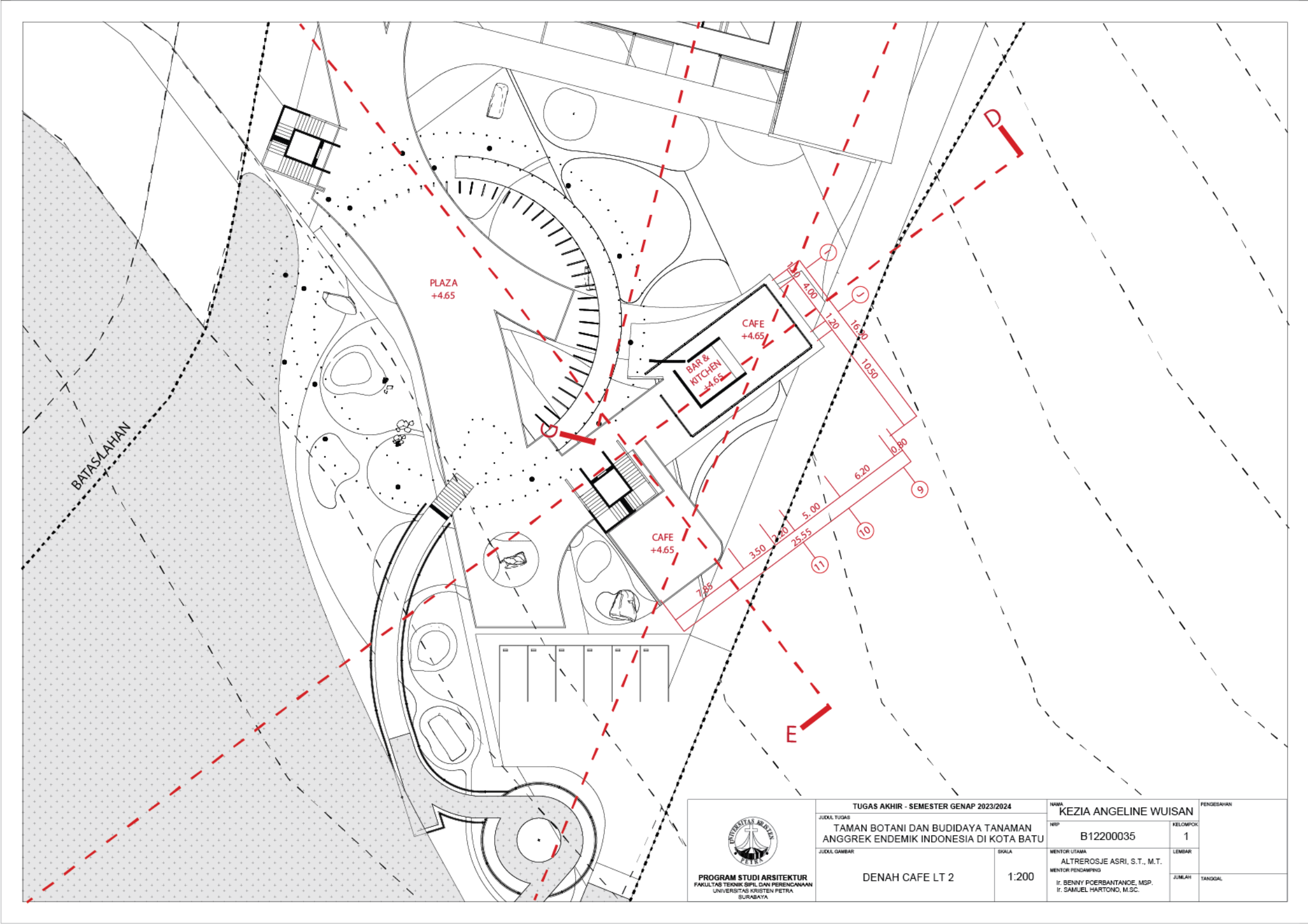 Keindahan anggrek Indonesia telah memukau dunia. Namun, ancaman terhadap habitatnya membuat keberadaan spesies-spesies anggrek semakin rentan. Sebagai upaya pelestarian, sebuah taman botani dan konservasi anggrek dirancang khusus di Kota Batu. Fasilitas ini tidak hanya menjadi pusat penelitian dan budidaya anggrek, tetapi juga destinasi wisata edukatif yang menarik. Desain bangunan mengadopsi konsep keberlanjutan, menyatu dengan alam sekitar melalui sistem pencahayaan alami. Pengunjung diajak menjelajahi berbagai jenis anggrek. Setiap sudut taman dirancang untuk memberikan pengalaman estetika dan edukasi yang mendalam, mulai dari rumah kaca dengan koleksi anggrek yang melimpah hingga taman terbuka yang asri. Dengan pendekatan arsitektur berpori, bangunan menciptakan ruang yang dinamis dan menyatu dengan alam. Taman botani ini bukan hanya menjadi tempat pelestarian anggrek, tetapi juga pusat edukasi bagi masyarakat, terutama generasi muda. Dengan harapan, kesadaran akan pentingnya menjaga keanekaragaman hayati akan semakin meningkat. Selain itu, fasilitas ini juga berpotensi menjadi daya tarik wisata baru di Kota Batu, sehingga berkontribusi pada perekonomian lokal. Kata Kunci : Anggrek Endemik Indonesia, Budidaya, Edukasi, Arsitektur Berpori, Taman Botani