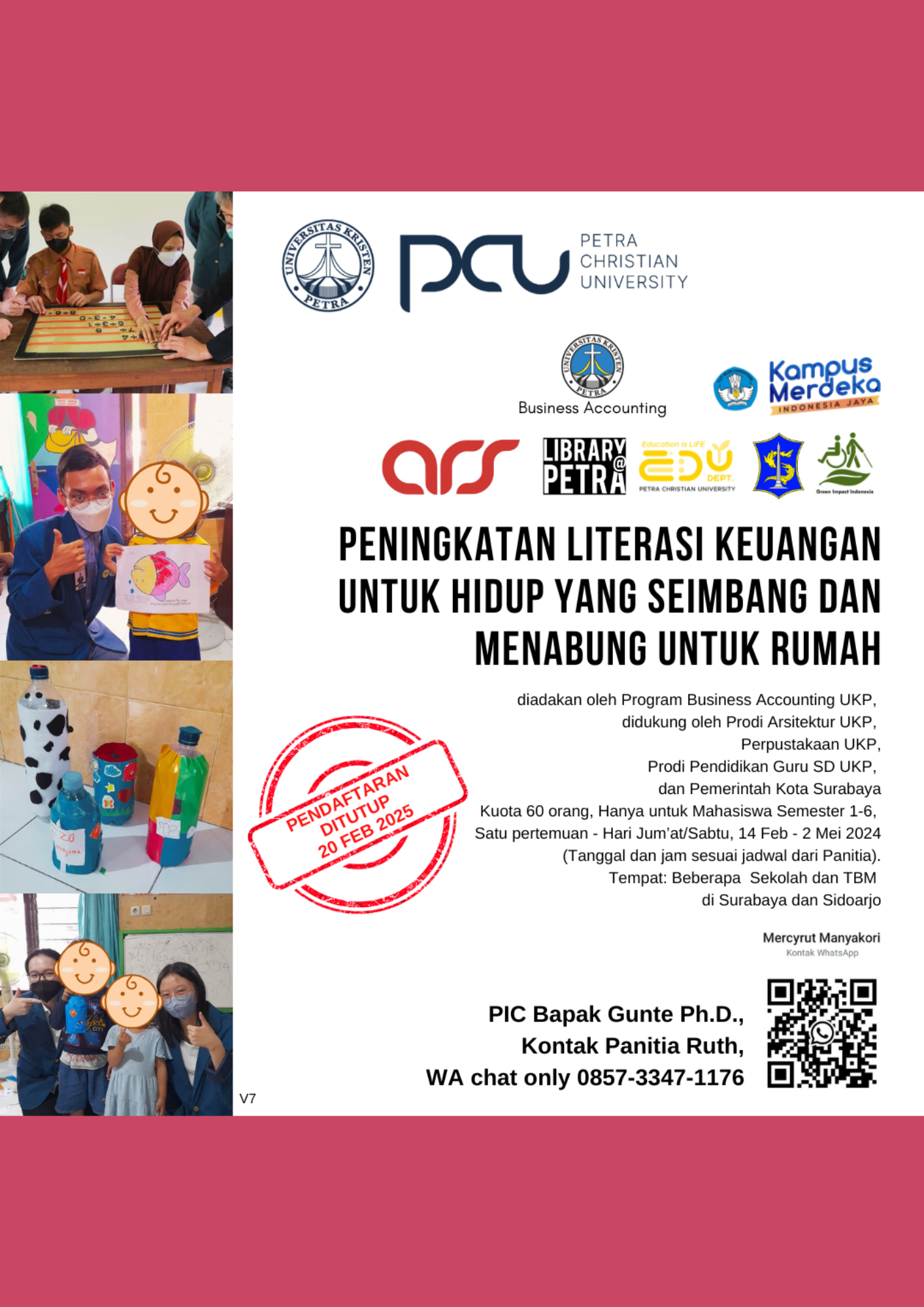 Program Pengabdian Masyarakat ini bertujuan meningkatkan literasi keuangan bagi beberapa komunitas termasuk orang dengan disabilitas, anak – anak dan remaja melalui pelatihan manajemen arus kas dan strategi menabung. Kegiatan ini mencakup pemberian materi edukatif tentang pengelolaan pendapatan dan pengeluaran, pentingnya menabung, serta cara mengelola keuangan sehari-hari dengan bijak. Dengan pendekatan yang inklusif dan mudah dipahami, program ini diharapkan dapat memberdayakan peserta untuk mencapai kemandirian finansial dan meningkatkan kualitas hidup mereka. Melalui peningkatan literasi keuangan, diharapkan Masyarakat dampingan dapat lebih siap menghadapi tantangan ekonomi dan merencanakan masa depan yang lebih baik.