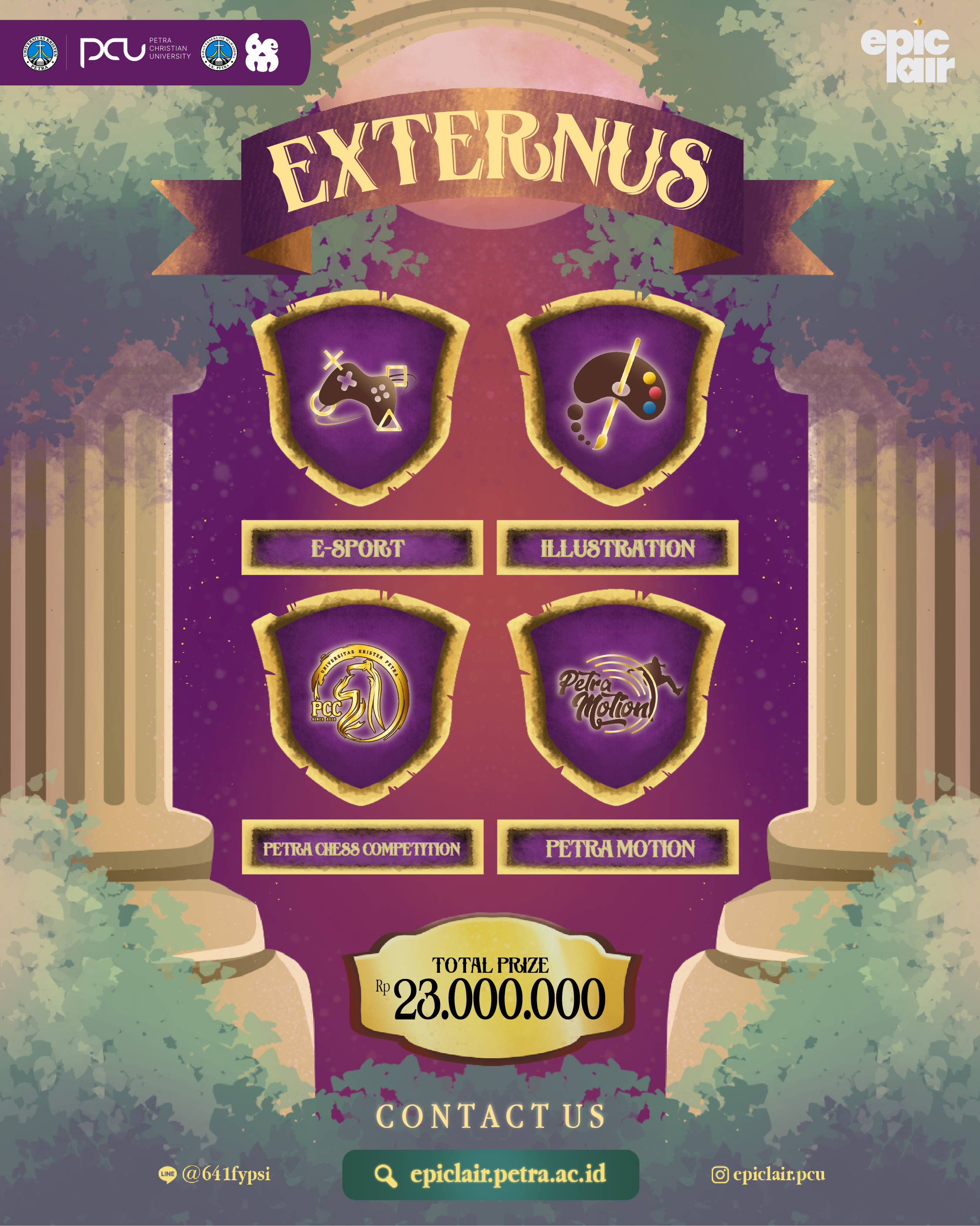 EPICLAIR: The Chosen Warrior adalah kegiatan tahunan yang diselenggarakan oleh Bidang 1 Badan Eksekutif Mahasiswa 2024/2025, Petra Christian University. Acara ini menghadirkan berbagai kompetisi di bidang olahraga, seni, dan insight, sebagai wadah bagi mahasiswa untuk mengembangkan diri, mengasah keterampilan, serta meningkatkan kepercayaan diri, kerja sama, dan sportivitas. Lebih dari sekadar ajang kompetisi, EPICLAIR: The Chosen Warrior memberikan ruang bagi peserta untuk belajar dan berkembang sesuai dengan minat dan bakat mereka. Melalui kegiatan ini, peserta tidak hanya meraih pengalaman berharga, tetapi juga memperkuat solidaritas, membangun jaringan sosial, dan menumbuhkan sikap pantang menyerah. Dengan semangat kebersamaan dan nilai-nilai kompetitif yang dijunjung tinggi, EPICLAIR: The Chosen Warrior diharapkan dapat menciptakan generasi mahasiswa yang tangguh, kreatif, dan berprestasi.