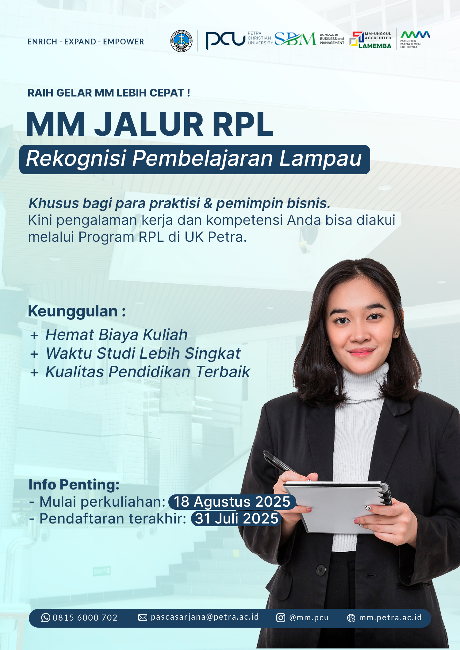 - Ibu Pauline 08156000702 atau klik petra.id/mm-onestopinfo atau