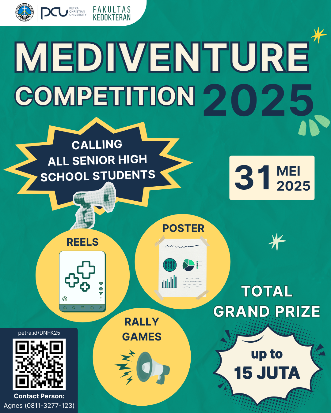 🎉 KOMPETISI MEDIVENTURE 2025 TELAH HADIR! 🎉Tunjukkan kreativitas dan semangat timmu dalam kompetisi paling seru tahun ini! ✨3 kategori, dengan TOTAL HADIAH hingga Rp15 JUTA! 💸