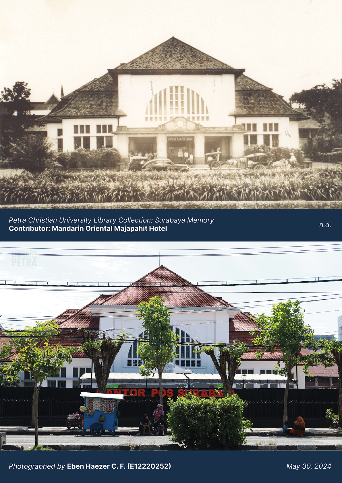 Lokasi yang kini berdiri Kantor Pos Besar Surabaya, awalnya merupakan pusat Kabupaten dan menjadi Dalem Bupati Surabaya sampai tahun 1881. Sebelumnya, abad 15 sampai dengan 18, Surabaya adalah suatu kerajaan yang bersama-sama dengan kerajaan kecil lainnya di Jawa Timur melawan ekspansi Mataram, tetapi kalah. Pada pertengahan abad 18 Surabaya yang telah berstatus kadipaten, kekuasaan di pecah oleh VOC menjadi kadipaten kesepuhan dan kadipaten kanoman. Dari sinilah sejarah kekuasaan kadipaten di surabaya berakhir. Selanjutnya tahun 1881 1912 gedung ini ditempati oleh HBS (Hoogere Burger School) Soerabaia (setingkat SMA kemudian dipakai untuk Hoofd Comisariat Van Politie atau Kepala Komisariat Surabaya. Hingga kini bangunan yang bergaya kolonial yang disesuaikan dengan iklim setempat ini masih kokoh. Ciri khas yang dimiliki bangunan ini adalah adanya lubang ventilasi yang di perlihatkan sebagai elemen arsitektur yang menarik dengan bentuk lengkungan. Selain itu tampak bangunan yang simetri membuatnya menjadi lebih monumental