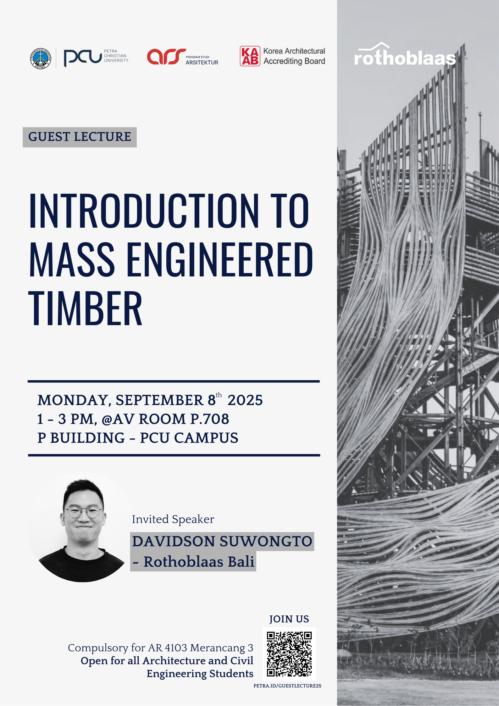 Kuliah tamu wajib untuk Studio Merancang 3, dan terbuka untuk mahasiswa Arsitektur, Teknik Sipil serta Prodi lain, yang akan membahas: