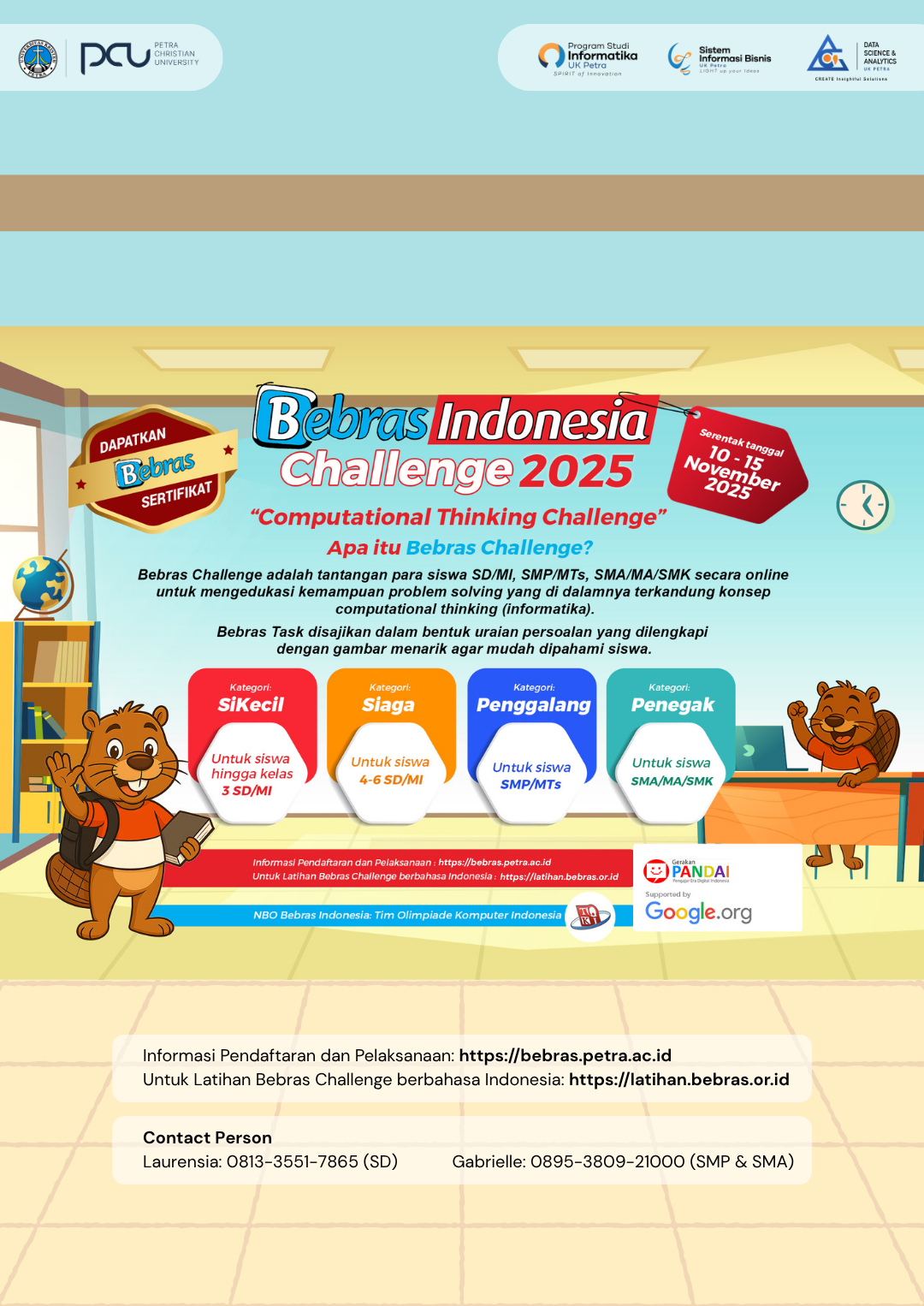 Pelaksanaan Bebras Indonesia Challenge 2025 diselenggarakan secara serentak pada 10-15 November 2025.