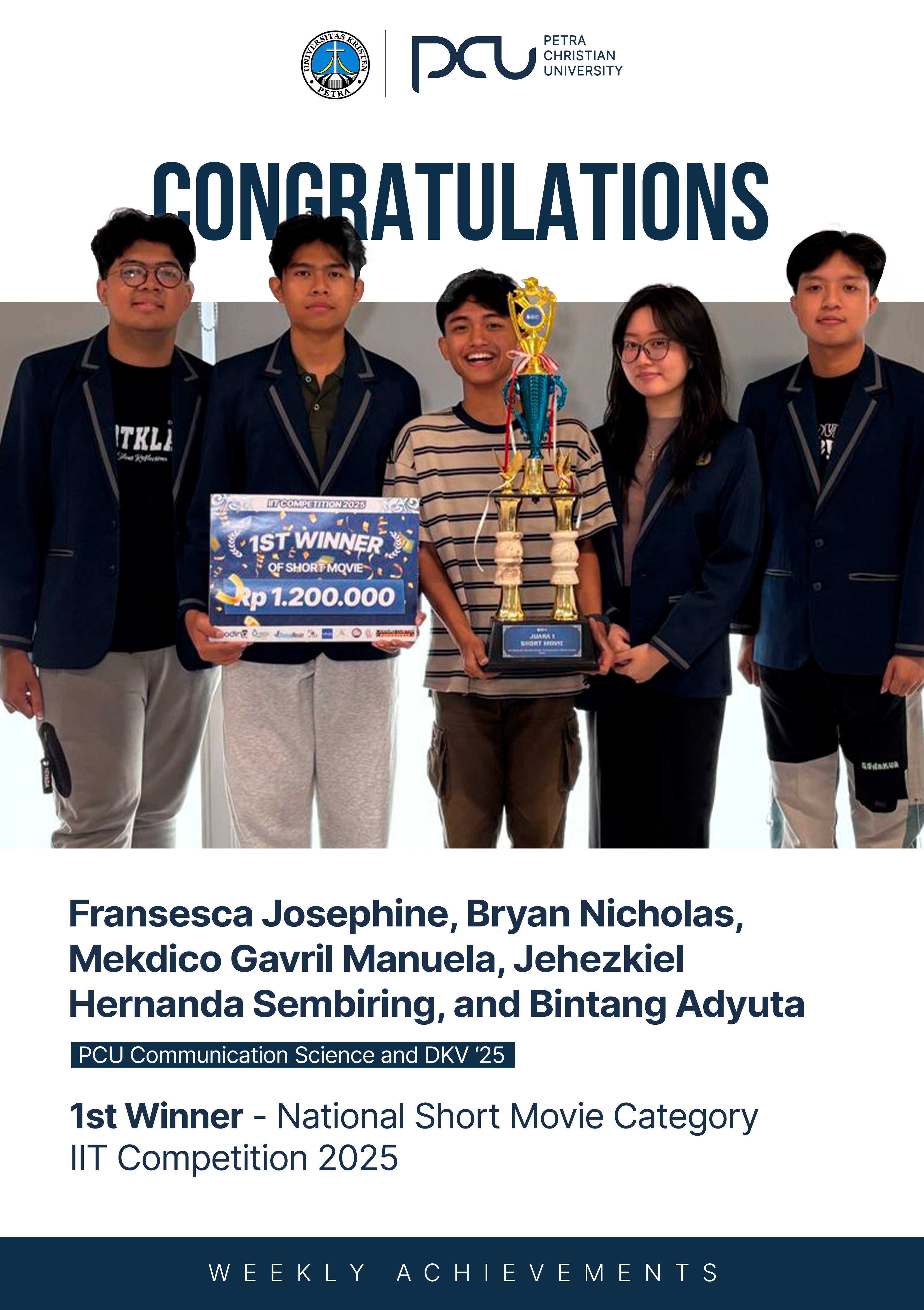 Selamat atas prestasi yang diraih Fransesca Josephine, Bryan Nicholas, Mekdico Gavril Manuela, Jehezkiel Hernanda Sembiring, Bintang Adyuta sebagai 1st Winner dalam National Short Movie Category IIT Competition 2025