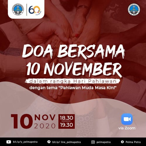 Pusat Kerohanian UK Petra dalam rangka hari Pahlawan 2020, mengadakan acara doa bersama. Dengan tema Pahlawan muda masa kini, acara ini diselenggarakan pada 10 November 2020 jam 18.30 - 19.30 WIB secara online.