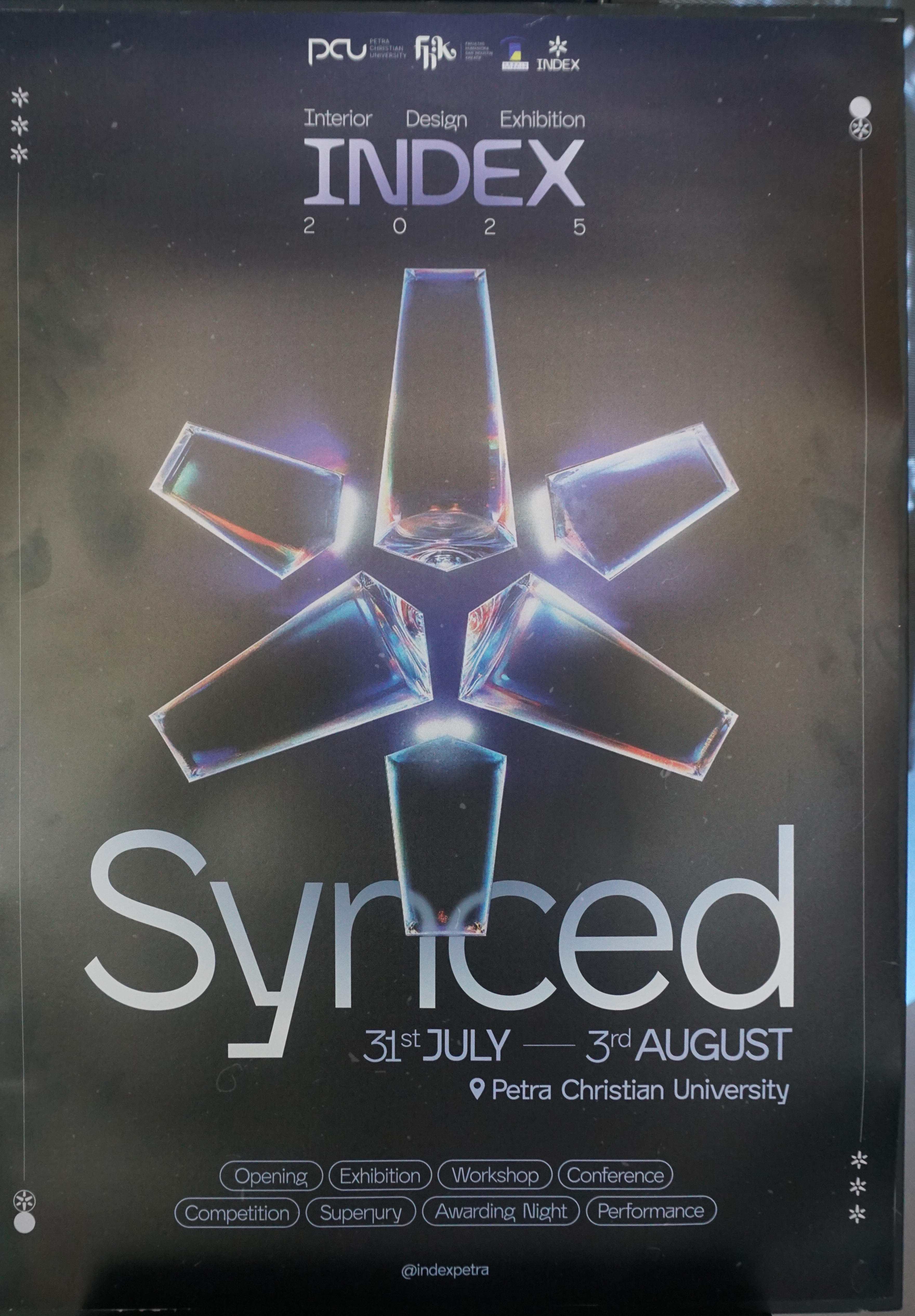 Interior Design Exhibition (INDEX) 2025 dengan mengangkat tema Synced menampilkan beberapa ide baru dari mahasiswa Desain Interior UK Petra. Pameran interior design ini diselenggarakan pada 31 Juli - 03 Agustus 2025, di kampus UK Petra.