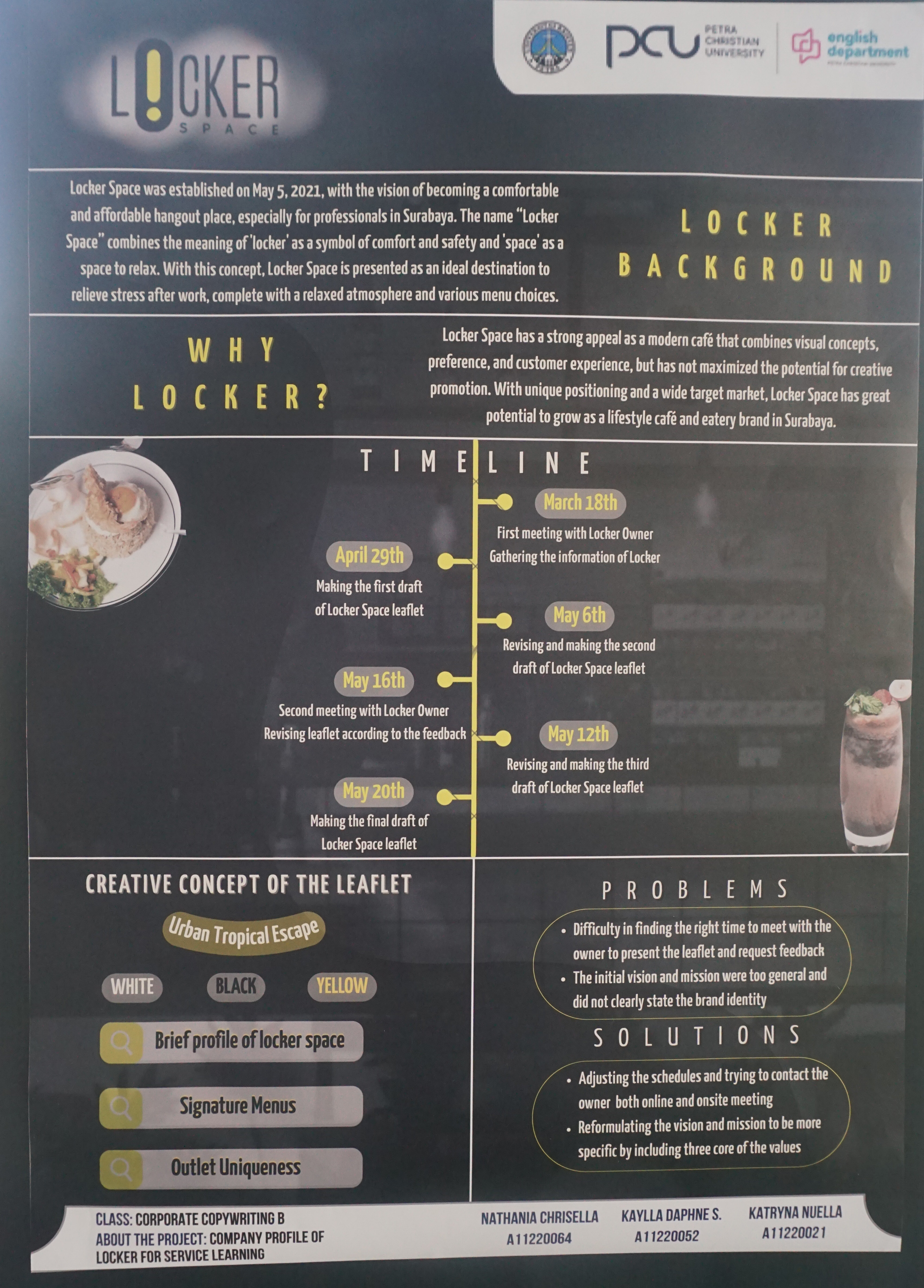 Poster ini dibuat untuk final project exhibition dari mahasiswa Program Studi English for Creative Industry. Salah satu materi pameran adalah Company Profile Locker Space Coffe & Eatery.
