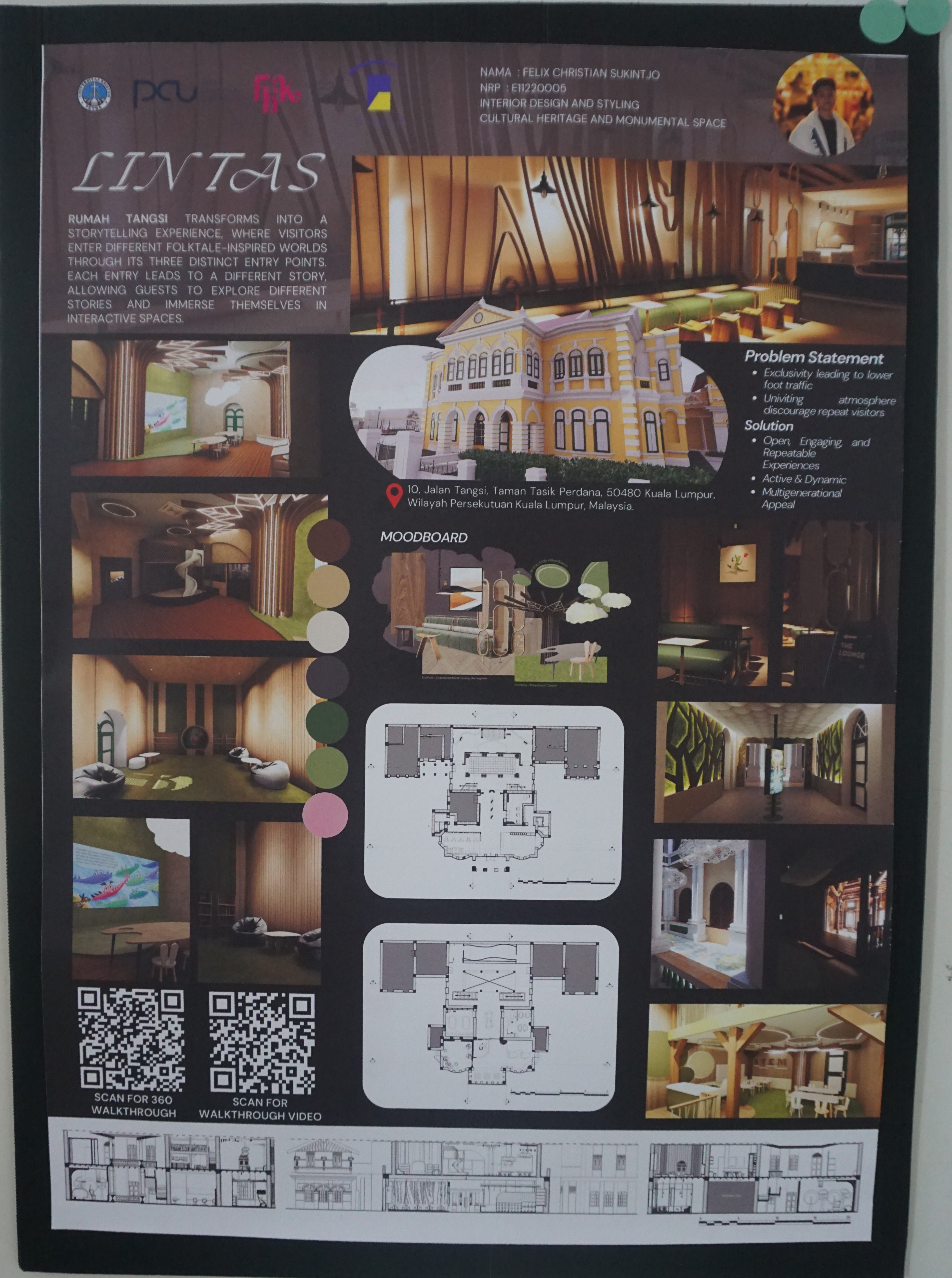 Dalam rangka menyemarakkan 27 tahun Prodi Desain Interior diselenggarakan seminar Insight bersama alumni dan pengguna lulusan, serta rangkaian acara IDE+ (Interior Design Exhibition and Workshop) 18-20 Juni 2025 yang menyajikan berbagai karya mata kuliah Personal Space, Presentasi Visual, Interior Design for Workspace, Furniture Design for Workspace, Interior Design for Cultural Space, Interior Product Design For Cultural Space, Craft and Furnishing, dan LEAP Final Project. Dalam pameran IDE+ tahun ini disajikan pula hasil karya kolaborasi project based learning Prodi Desain Interior PCU - UCSI dan UiTM. Salah satu materi pameran ini ialah Lintas: interior design and styling cultural heritage and monumental space. Karya Felix Christian Sukintjo (E11220005).