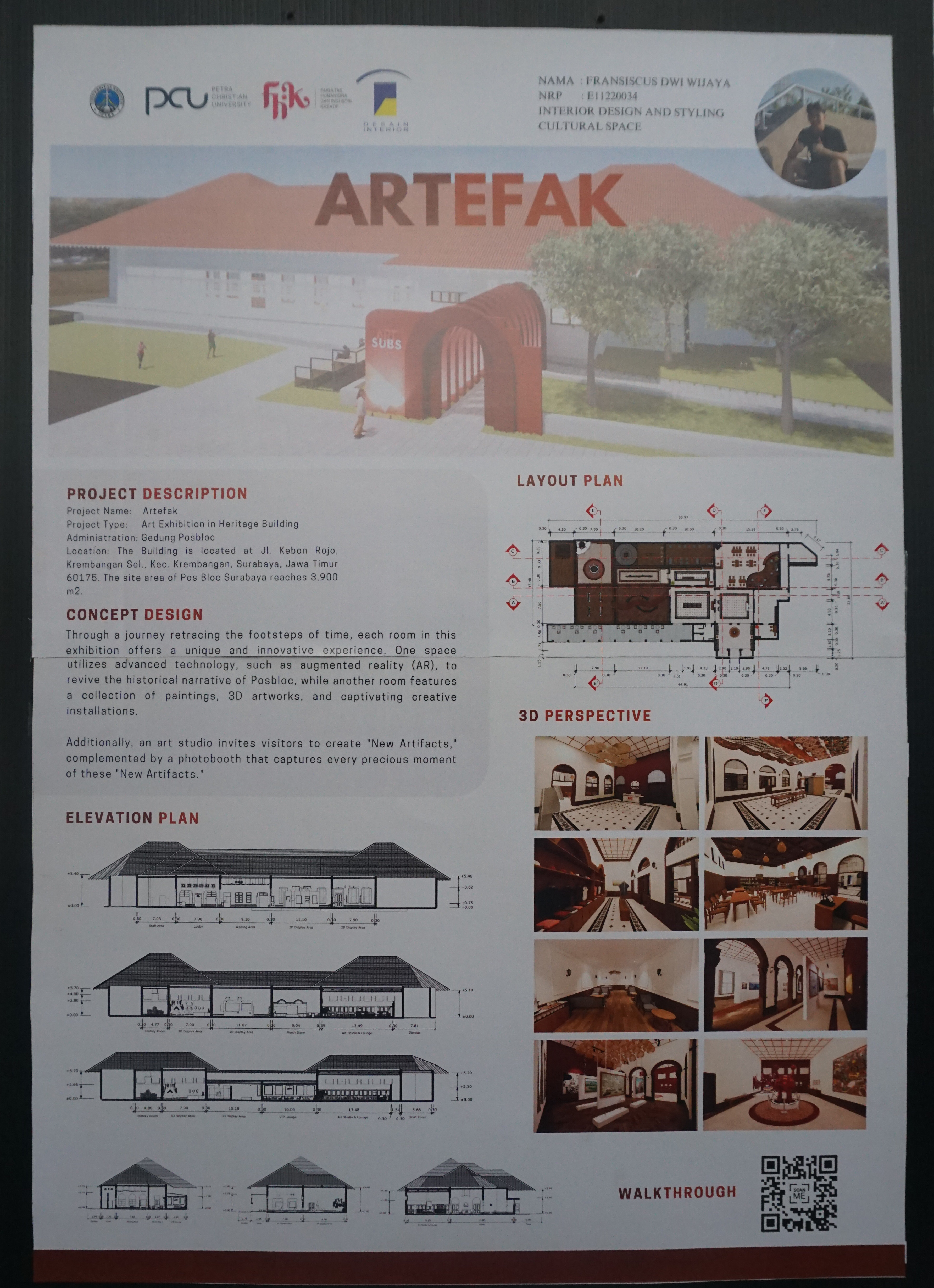 Dalam rangka menyemarakkan 27 tahun Prodi Desain Interior diselenggarakan seminar Insight bersama alumni dan pengguna lulusan, serta rangkaian acara IDE+ (Interior Design Exhibition and Workshop) 18-20 Juni 2025 yang menyajikan berbagai karya mata kuliah Personal Space, Presentasi Visual, Interior Design for Workspace, Furniture Design for Workspace, Interior Design for Cultural Space, Interior Product Design For Cultural Space, Craft and Furnishing, dan LEAP Final Project. Dalam pameran IDE+ tahun ini disajikan pula hasil karya kolaborasi project based learning Prodi Desain Interior PCU - UCSI dan UiTM. Salah satu materi pameran ini ialah Artefax: art exhibition in heritage building. Karya Fransiscus Dwi Wijaya (E11220034)