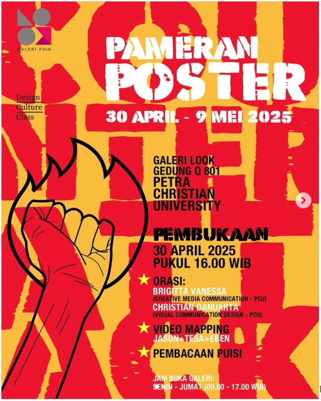 Pameran poster "COUNTER ATTACK" karya mahasiswa @dkvpetra (angkatan 2022) mata kuliah Design Culture ini diselenggarakan mulai tanggal 30 April sampai 9 Mei 2025 di Galeri Look @look.galeri UK Petra Surabaya.