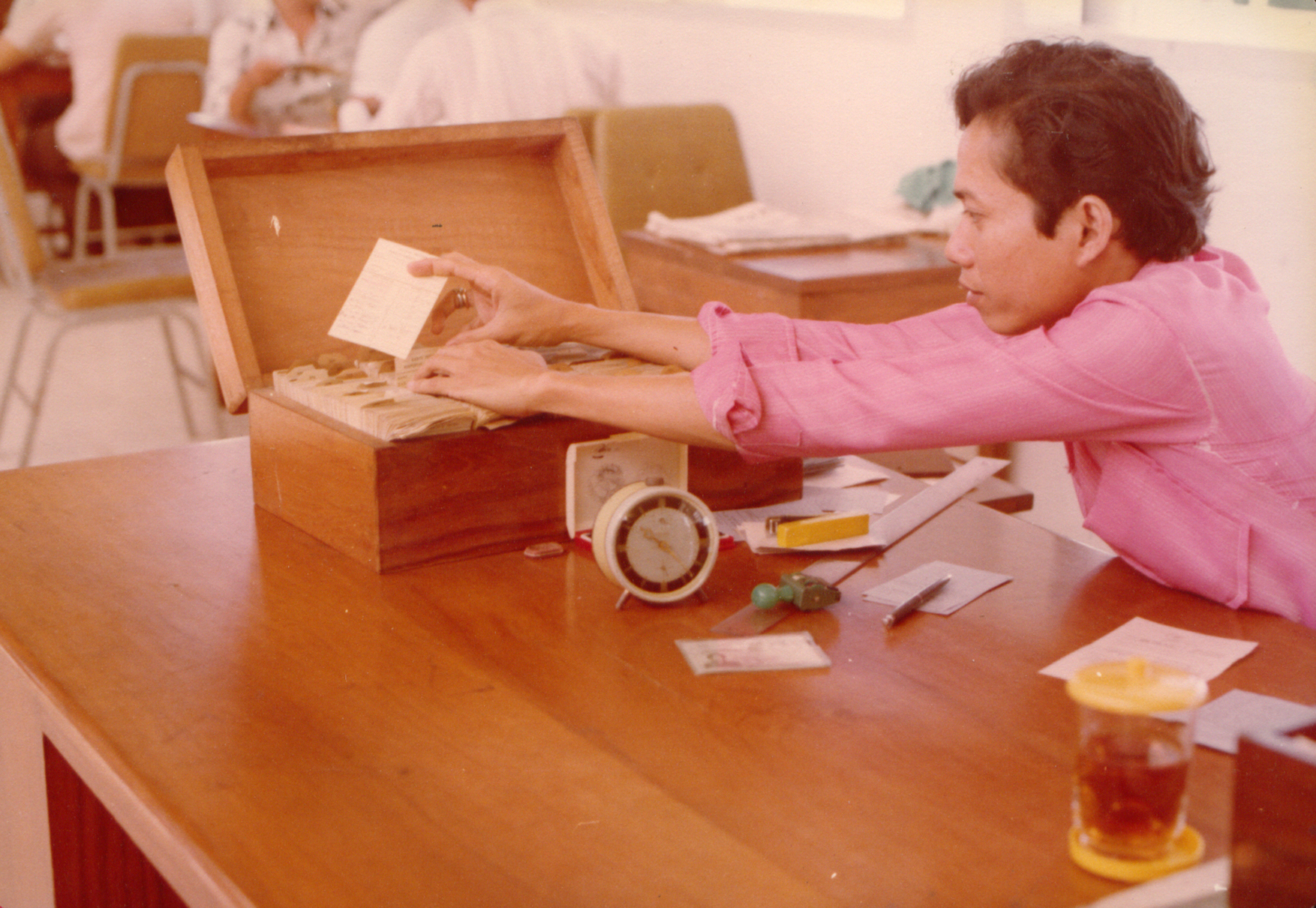 Dokumentasi karyawan dan pimpinan perpustakaan Universitas Kristen Petra Jalan Kalianyar tahun 1978