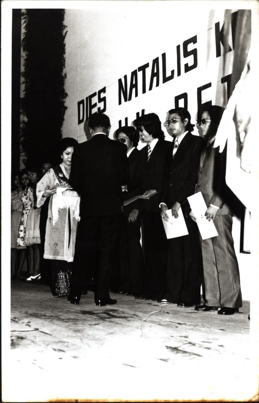 Dokumentasi wisuda sarjana dan sarjana muda pada dies natalis XIV Universitas Kristen Petra tanggal 25 Oktober 1975.