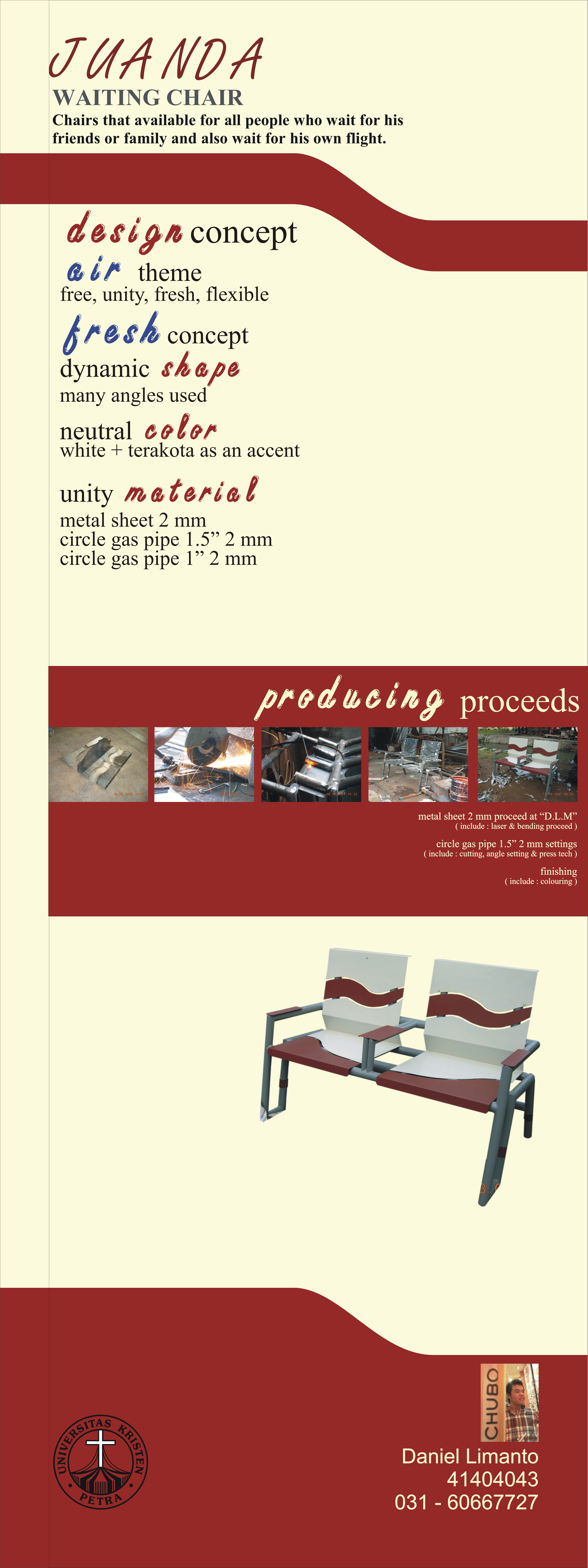 Tema dari disain kursi ruang tunggu Bandara Internasional Juanda ini adalah udara, sedangkan konsepnya adalah "fresh": Filosofinya: mengalir (dinamis), sejuk, flexible, satu kesatuan (unity).