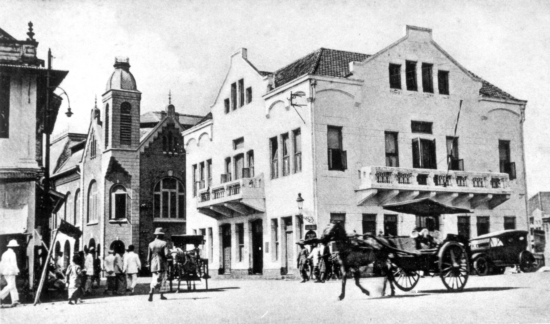 Gedung "Nederlands Spaarbank" (Nuts Spaarbank) di pojok jalan Jembatan Merah dan Jalan Cendrawasih, Surabaya