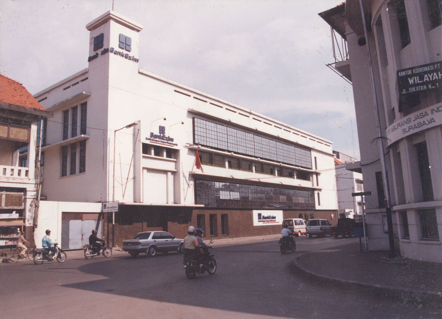 Dokumentasi foto Bank Exim (sekarang Bank Mandiri) di Jalan Veteran, Surabaya.
