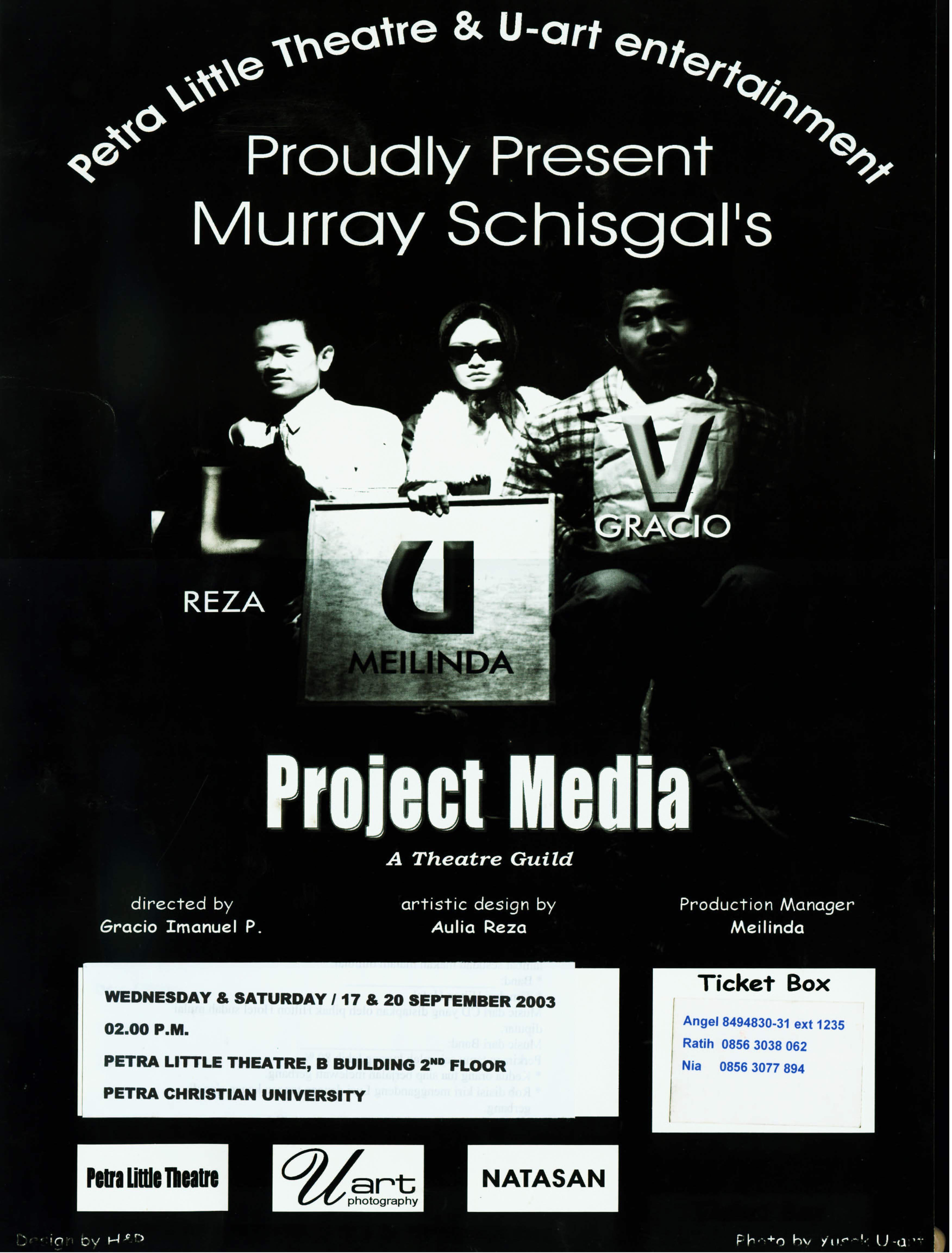 Posters of events held by Petra Little Theatre at B Building, 2nd floor English Department Petra Christian University, September 17 & 20, 2003