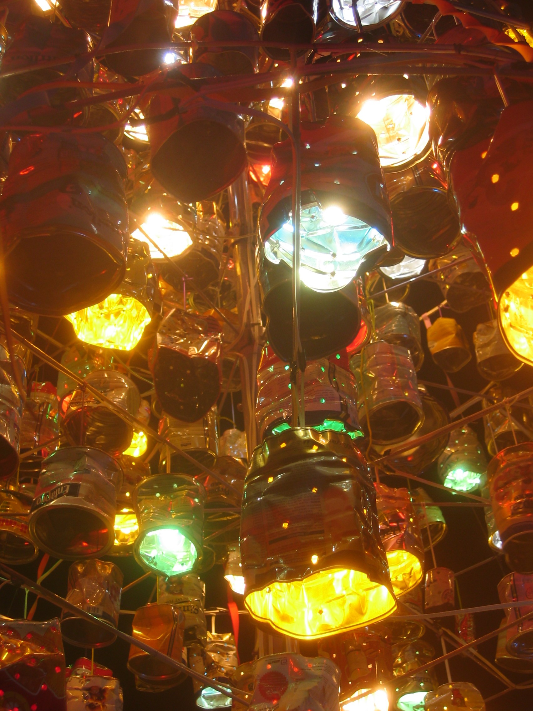 This Christmas Tree, called "Christmas Tree of Togetherness", is maked of 860 used tin cans, and reaches 5.60 m. The use tin cans were collected by the Petra Christian University staff.