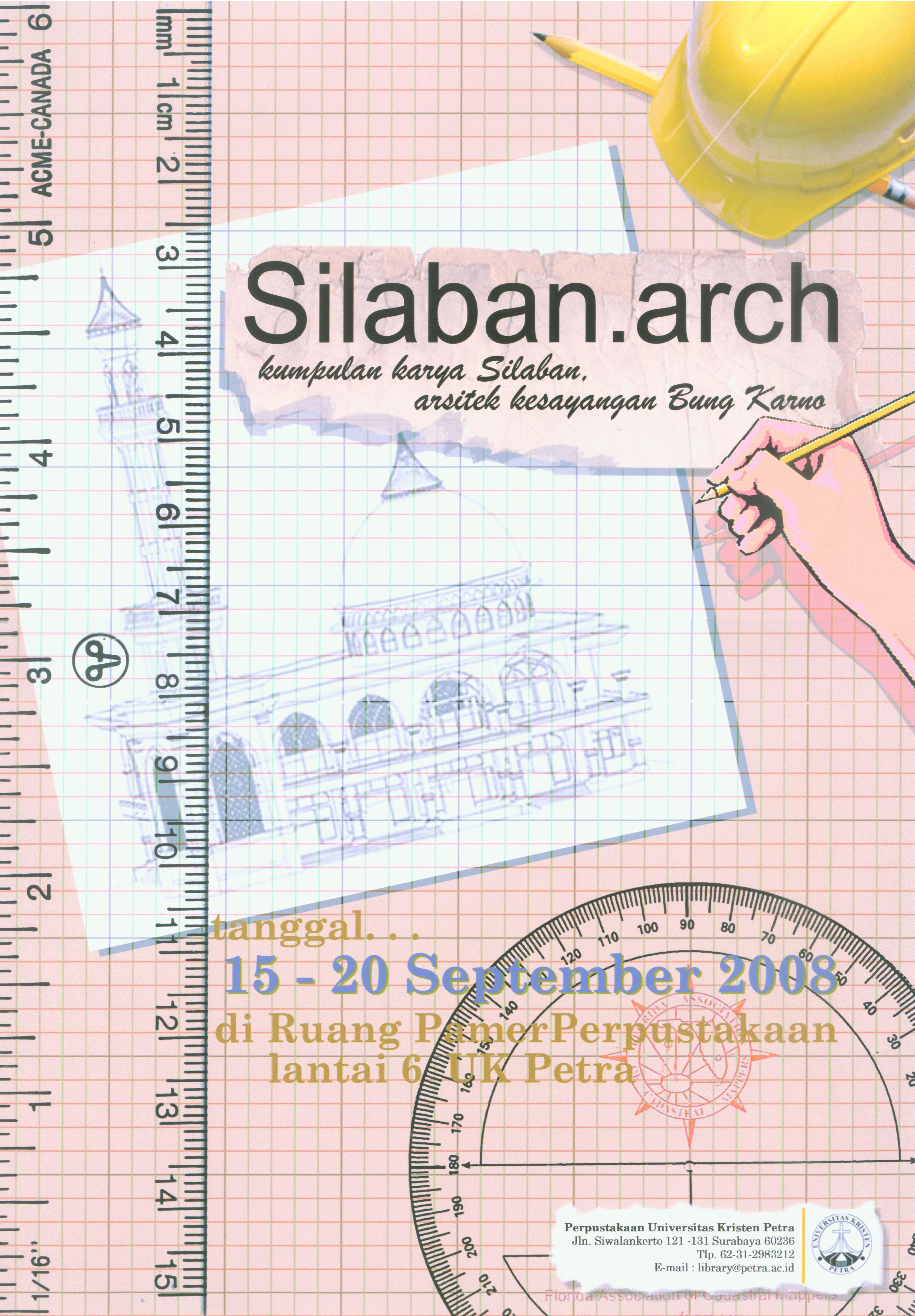 Pameran karya arsitektur terkenal Silaban dipamerkan di Ruang Pamer Perpustakaan mulai 15-20 September 2008. Contoh seperti karyanya yang terkenal adalah Masjid istiqlal Jakarta. Desain poster disesuaikan dengan tema. Silaban adalah tokoh arsitek yang cukup dikenal. Gambar yang digunakan disesuaikan dengan kegiatan atau ciri khas dari arsitek itu sendiri. Seperti penggaris, kertas, pensil, serta grade yang digunakan untuk membuat sketsa dari suatu bangunan. Topi arsitek dan gambar sketsa gedung masjid memperkuat pesan gambar dan memberikan "eye catching" pada poster tersebut. Warna disesuaikan dengan arsitek itu sendiri dengan topi berwarna kuning serta coklat yang menjadi latar belakang tersebut.