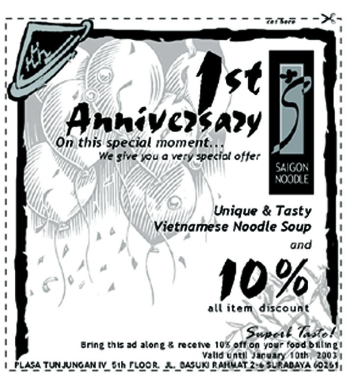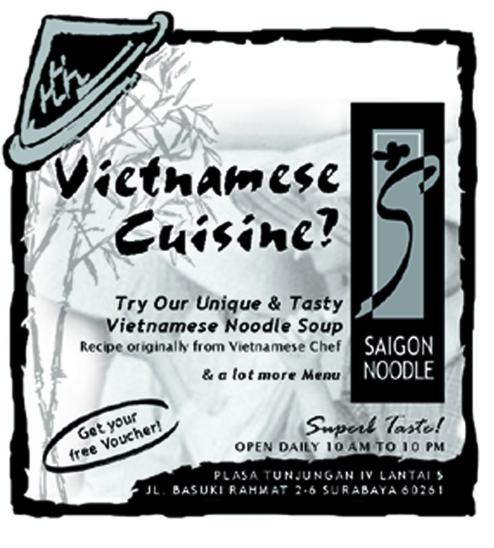 Tunjungan IV). Saigon Noodle Restaurant menyajikan jenis hidangan baru yang