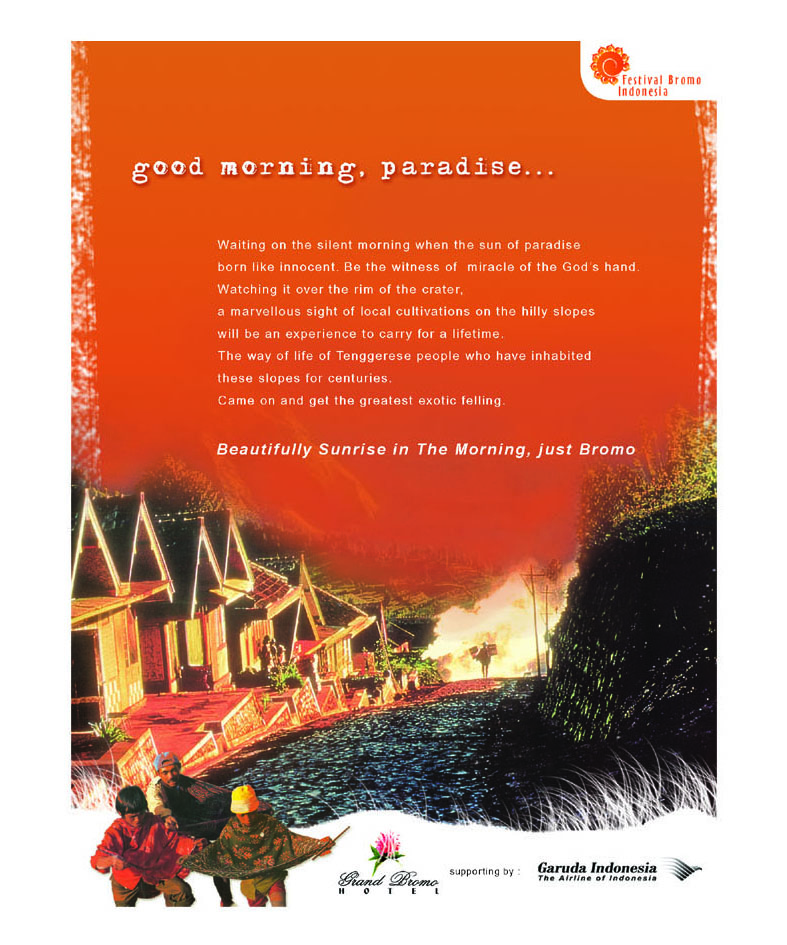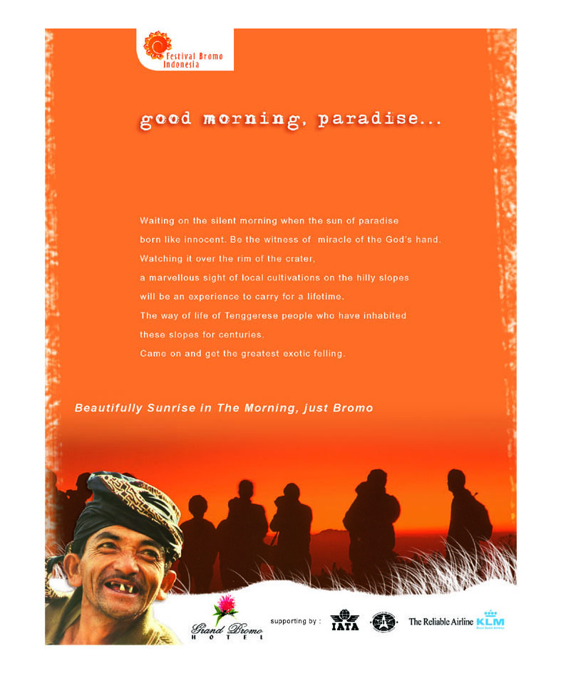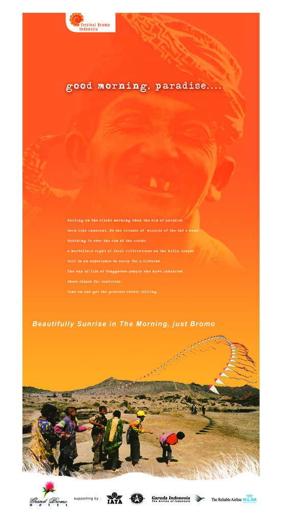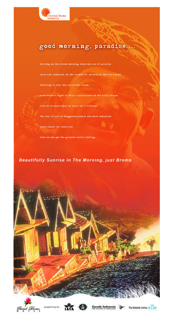 perancangan desain komunikasi visual periklanan wisata Bromo yang efektif.