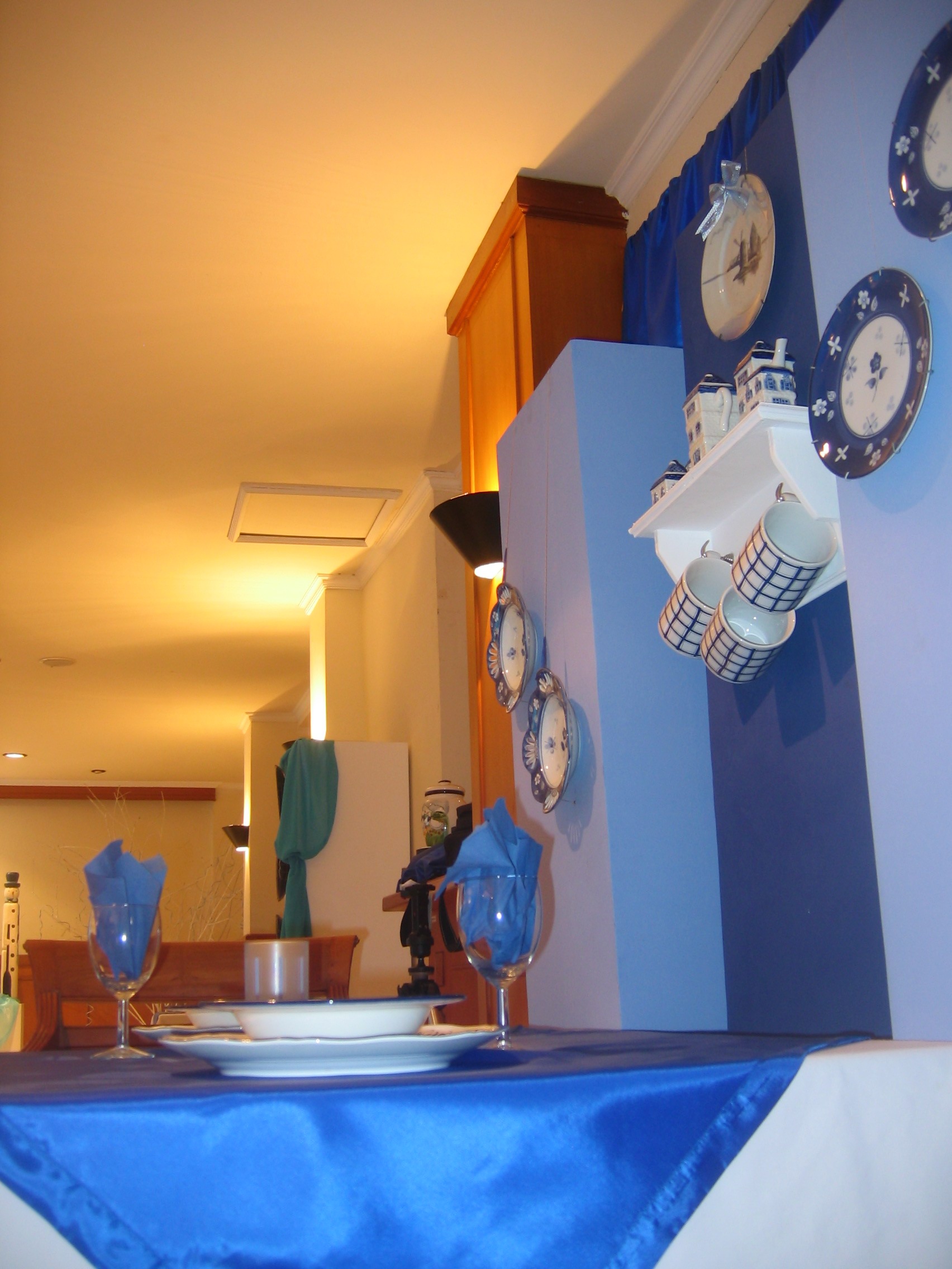 Kafe ini didesain untuk pasangan muda yang sedang berbulan madu dengan nuansa biru dan terkesan private tetapi hangat.